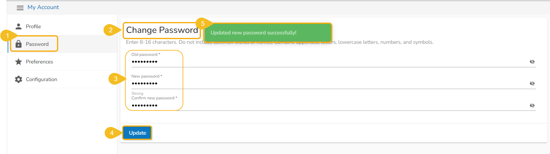 Click the Password tab using the My Account page.