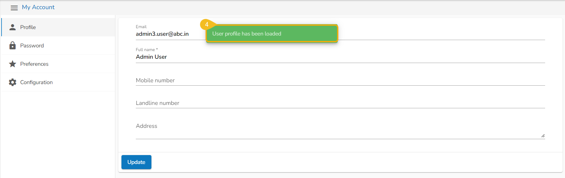 A notification message appears, and the user profile gets loaded.