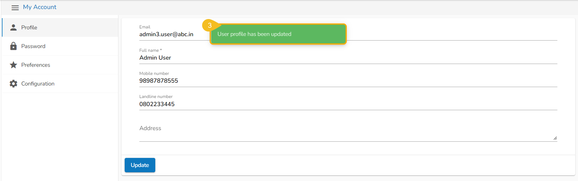 The profile changes get saved, and the same gets communicated through a confirmation message.