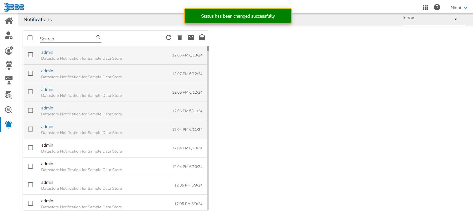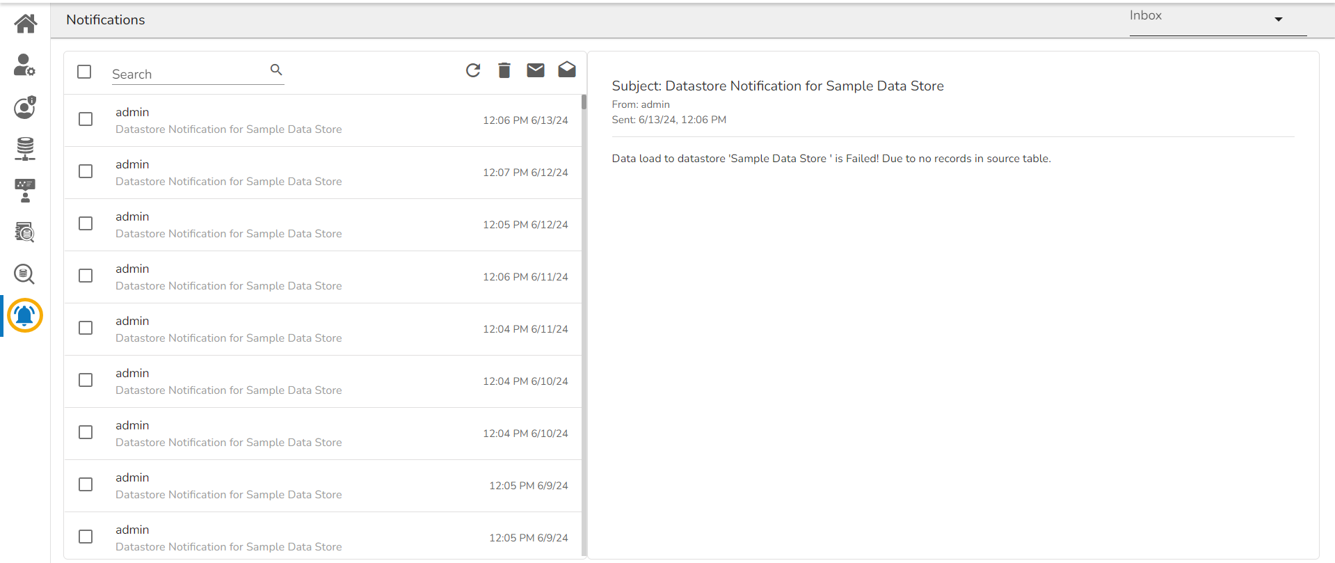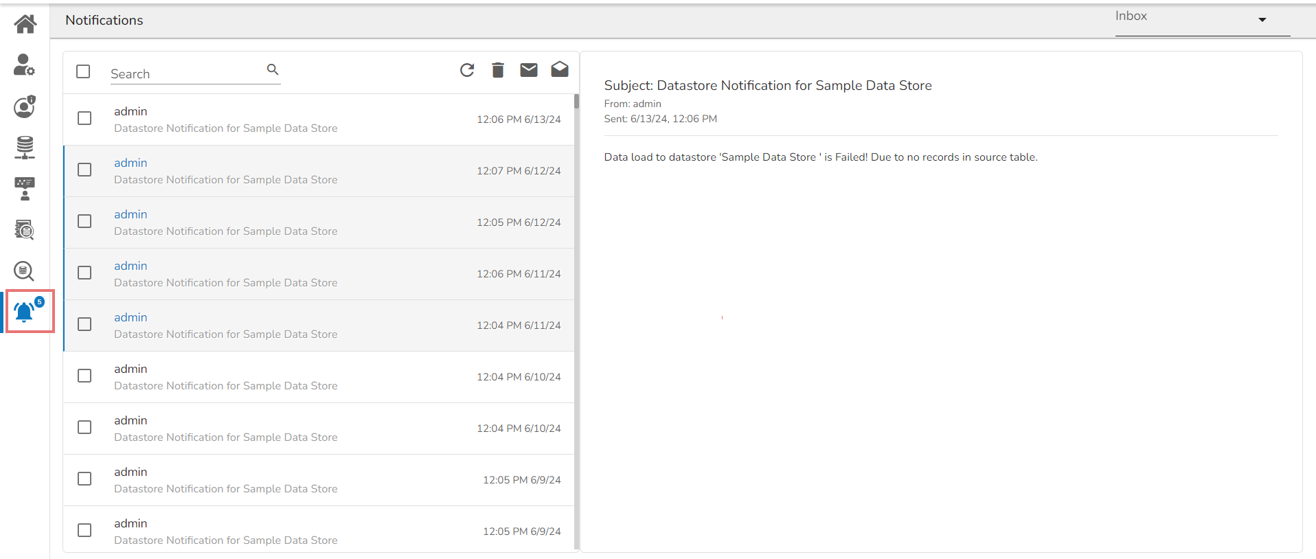 Navigate to the Inbox page and select the notification messages either by using the checkbox provided for Select All or selecting the individual messages by using the checkboxes next to them.