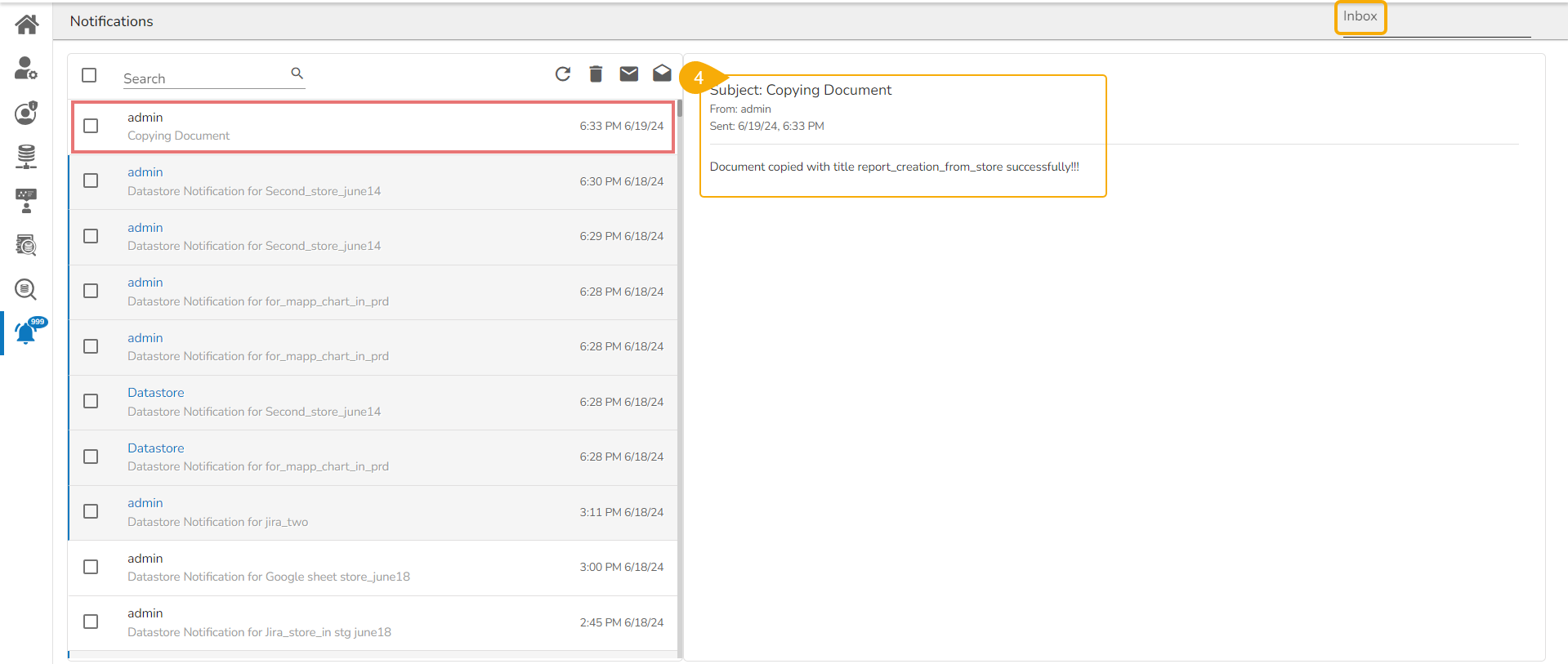 The Notification feature is a way to send and receive messages from processes to people (the platform user). By default, it has Inbox and Trash folders. The data store refresh and copy of a story document get communicated through this feature.