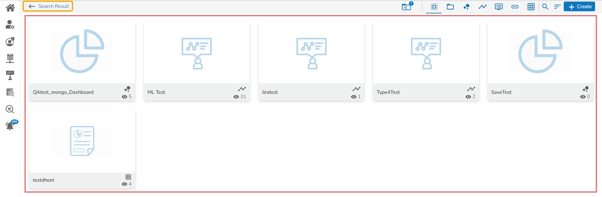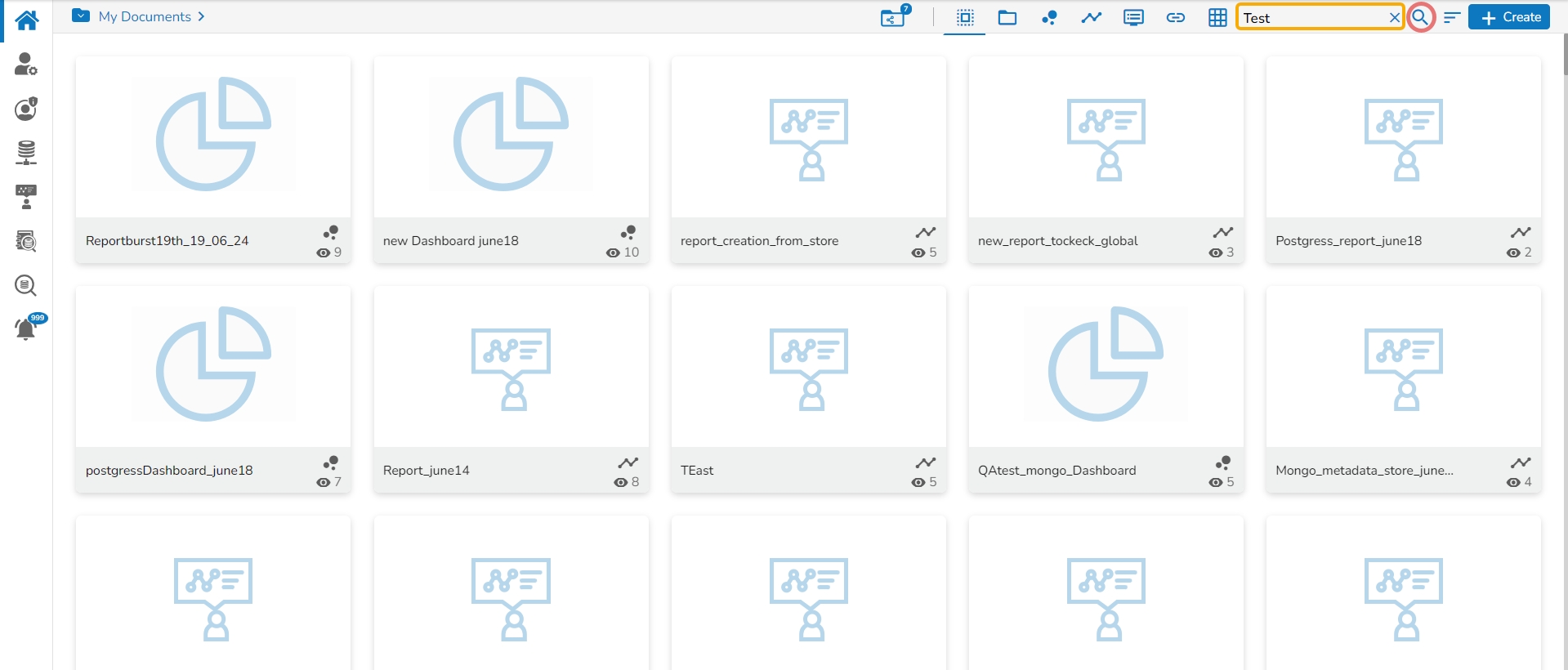 All the available documents with the matching search term get displayed as Search Result. E.g., The following image displays the documents containing the word test in their titles: