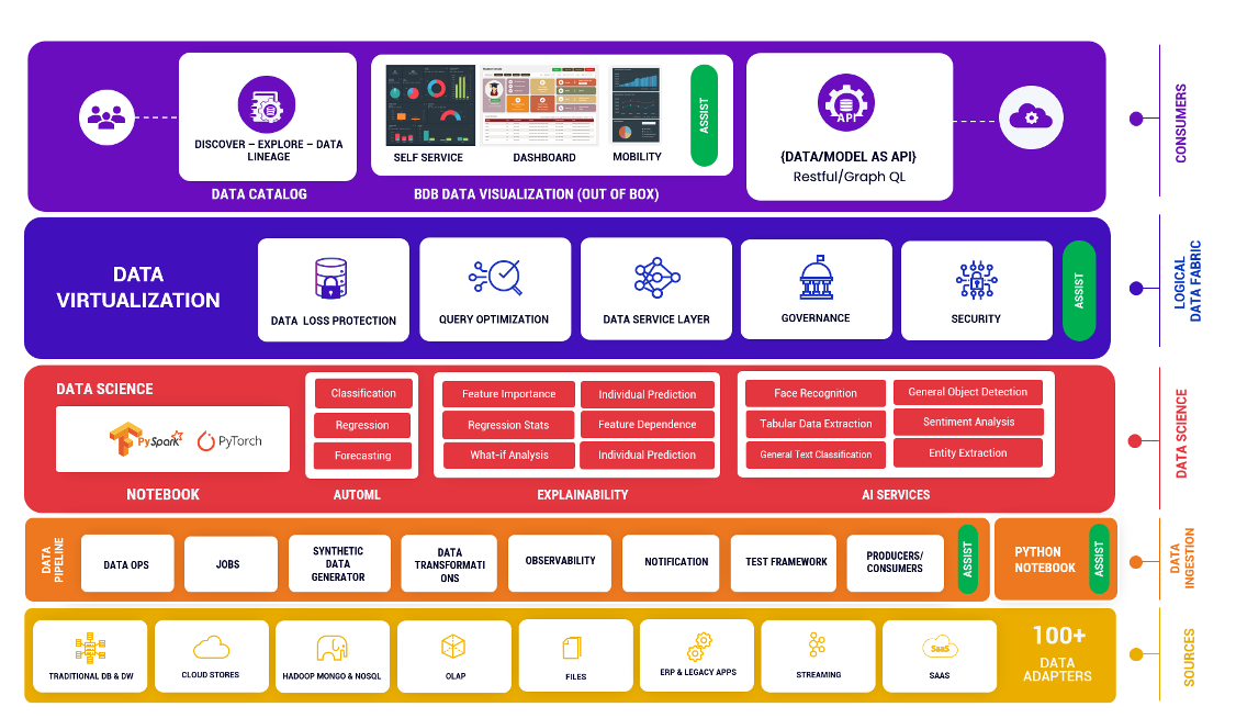 Introducing BDB, the ultimate integrated data and analytics platform that takes care of your end-to-end data journey, from seamless Data Ingestion to efficient Data Dissemination. Say goodbye to the complexities of managing Data Ops, AI/ML Ops, and data distribution separately. With BDB, everything is integrated into a single powerful platform.