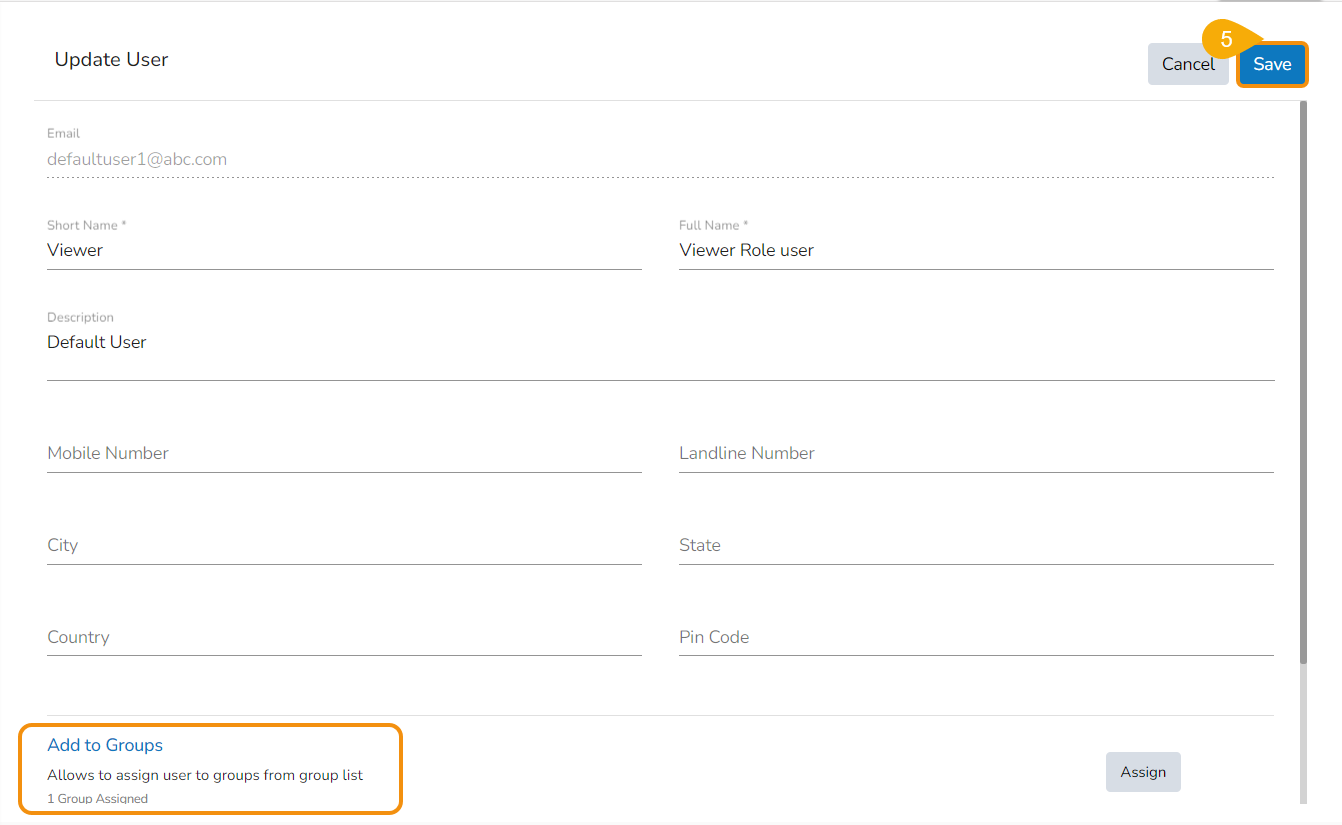 *<mark style="color:green;">Please Note</mark>: Incase of a **New User,** it will be **Create** option instead of **Save**.*