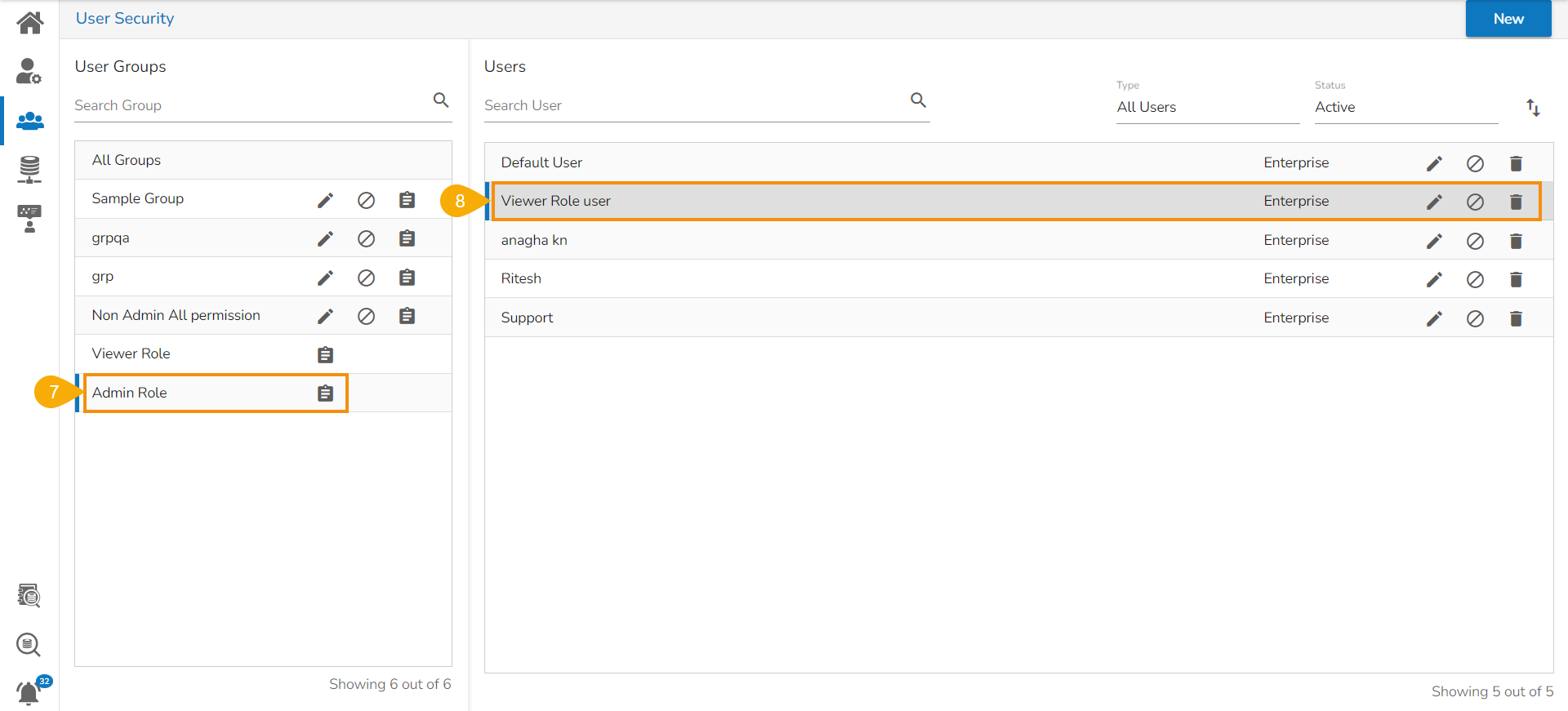 * The ***Admin Role*** group appears at the bottom of the ***User Groups*** list.