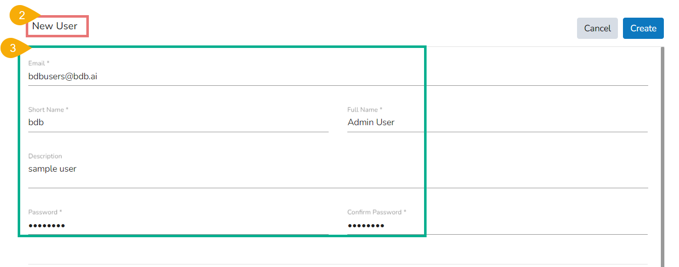 Fill in the following information to create a new User: