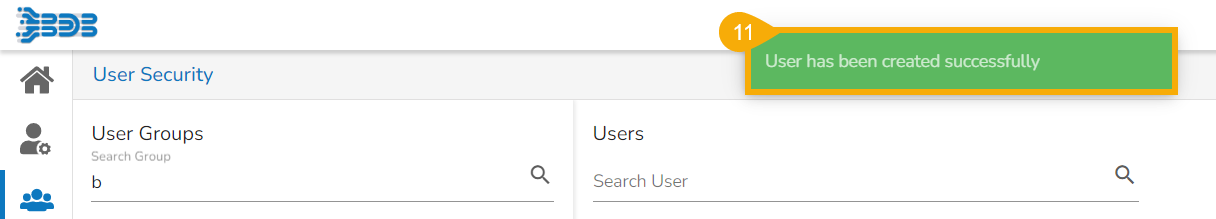 The newly created user gets added to the user list.