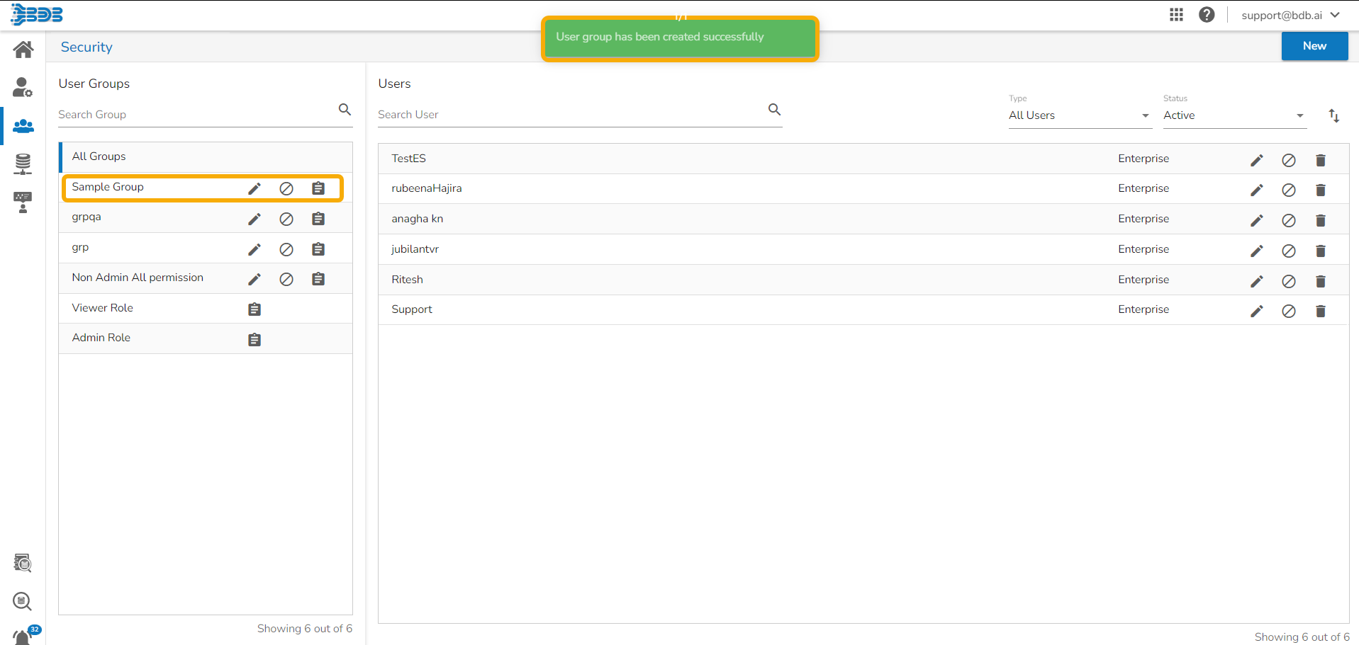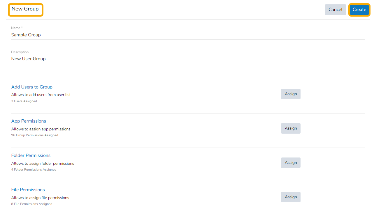 After adding users and allowing the required Permissions to the new group, click the Create option provided for the new User Group.