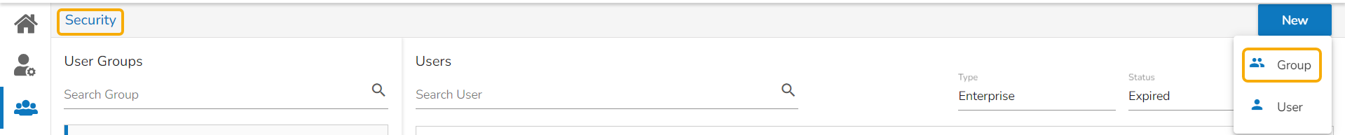 Click the New option given on the User Security page.