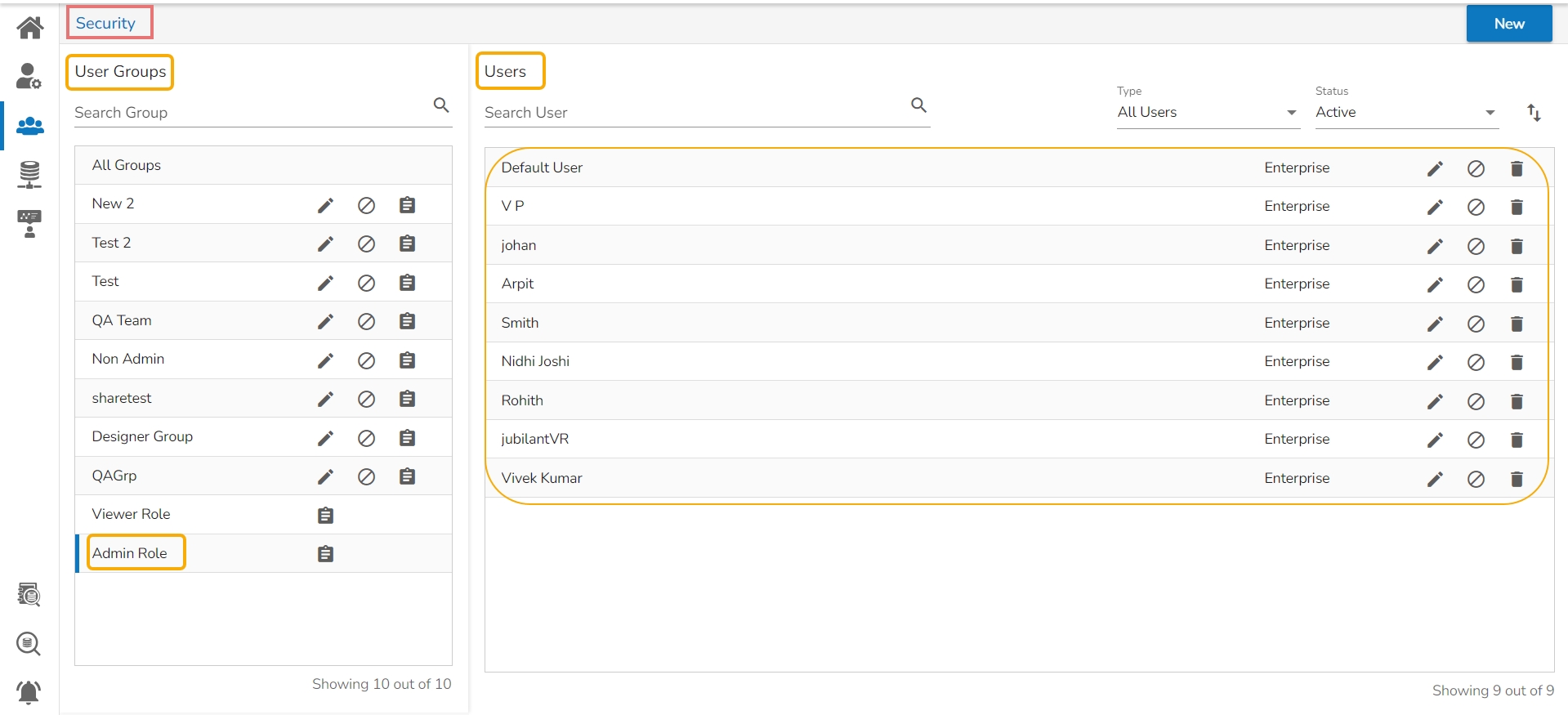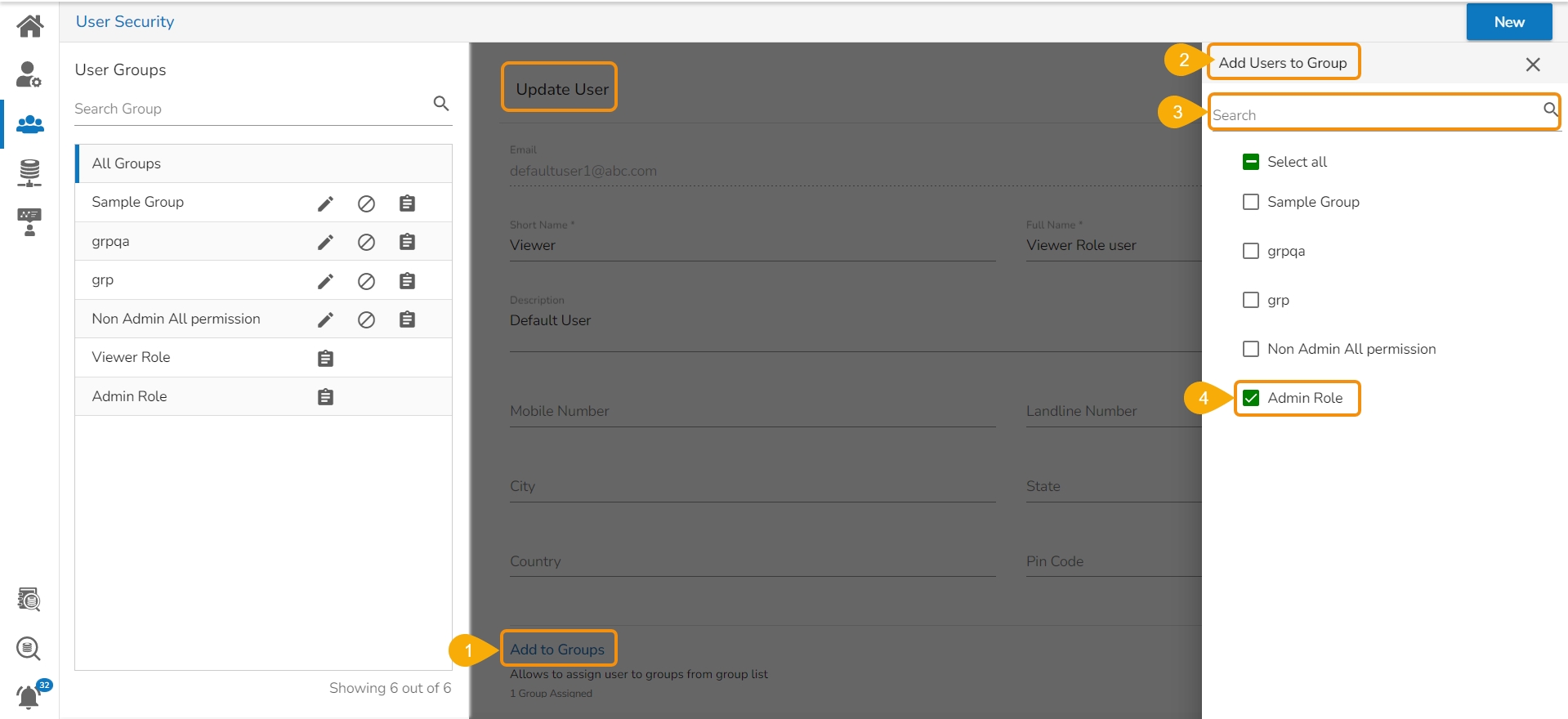 All the users added to the Admin Role will be listed while selecting the Admin Role user group.
