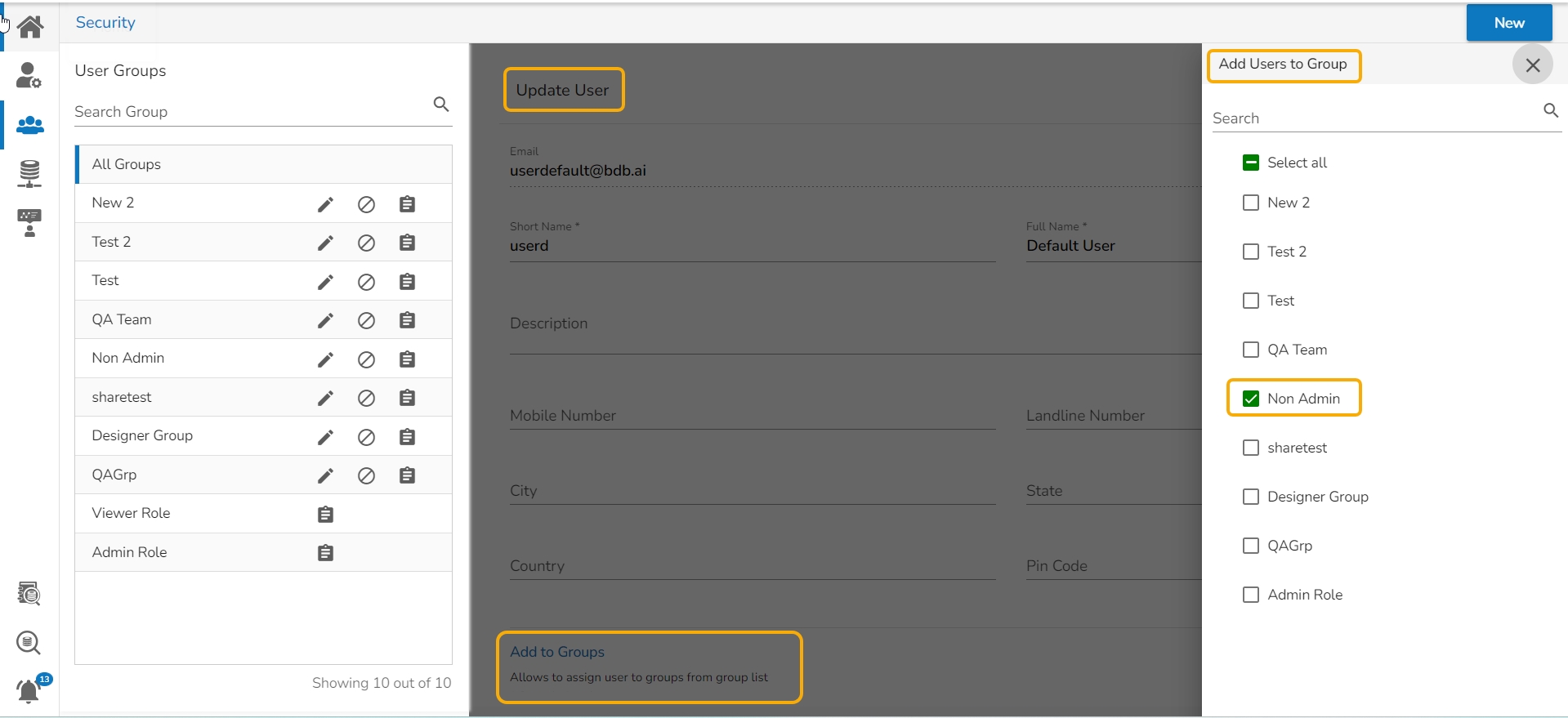 The user allocated to any group other than Admin Role with the limited credited permissions gets the non-admin user role category. The non-admin users may have customised access to platform modules based on the rights given by their administrator.