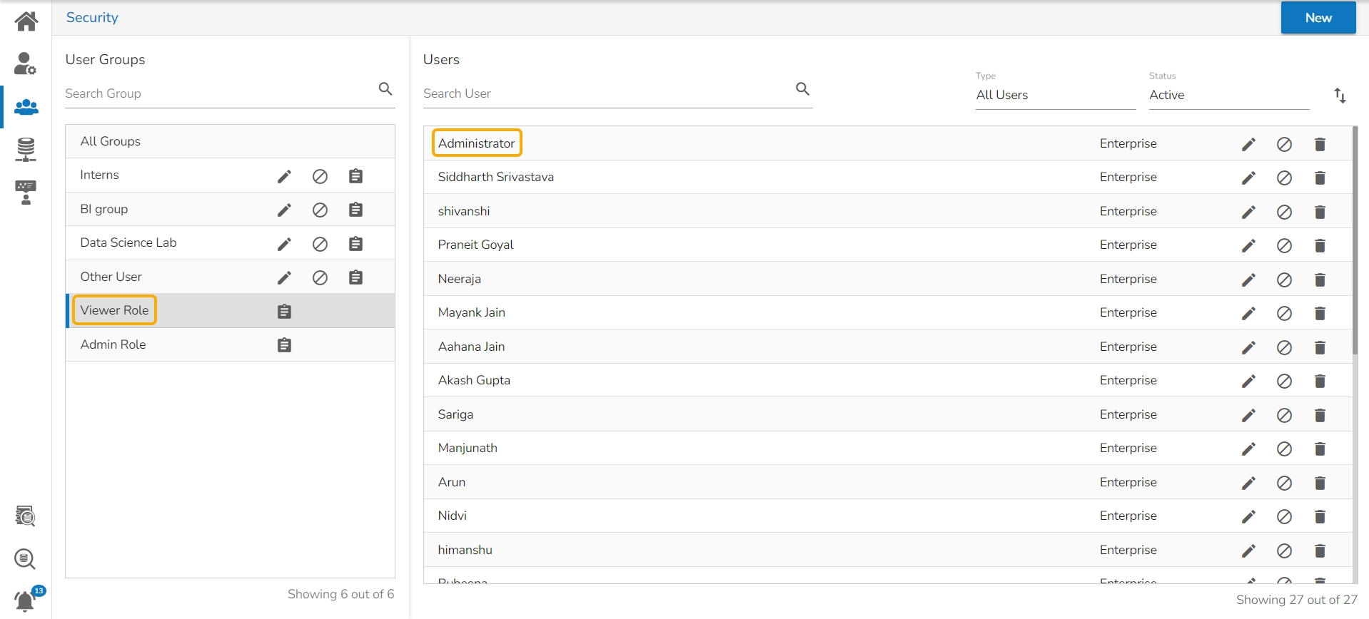 The newly created user who is not added to any group gets added to the default user group titled Viewer Role.