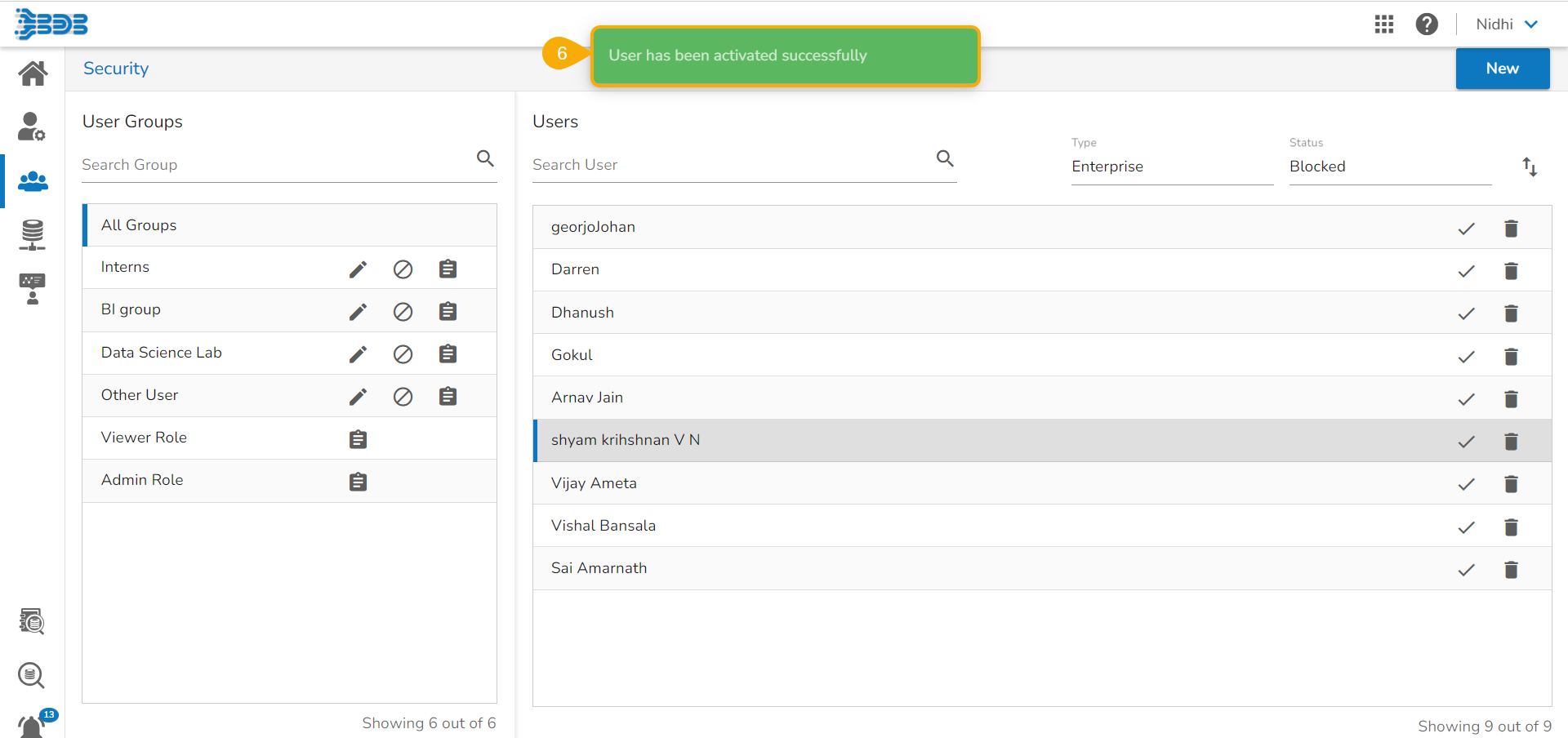 This section explains the steps to Activate a user from the Blocked or Expired Users lists.