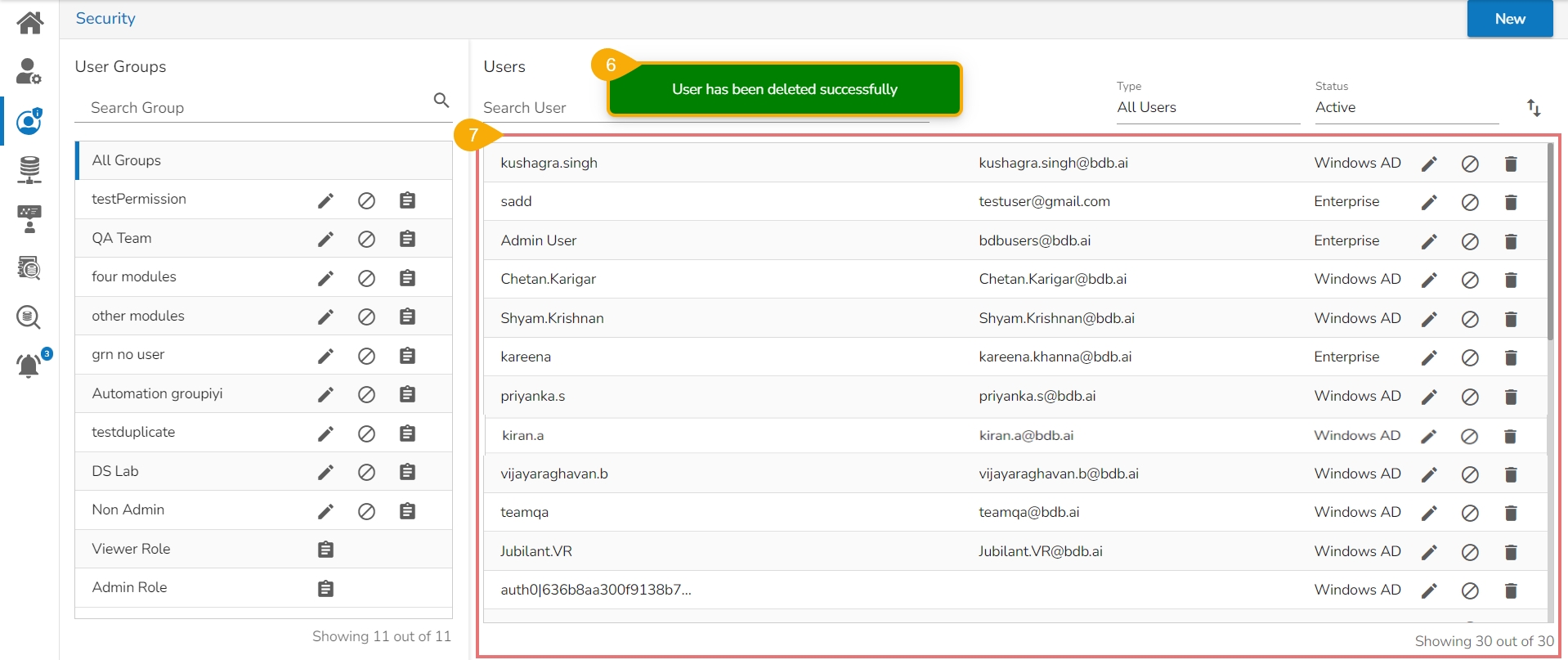 This option helps to remove a user from the user list.