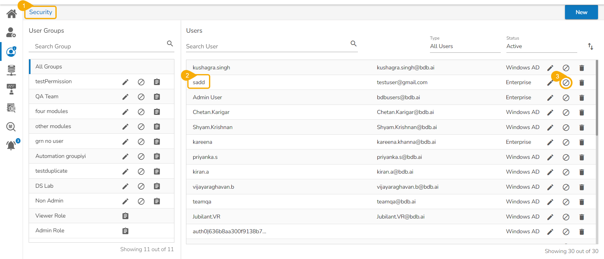Click the Block User icon for the selected user.