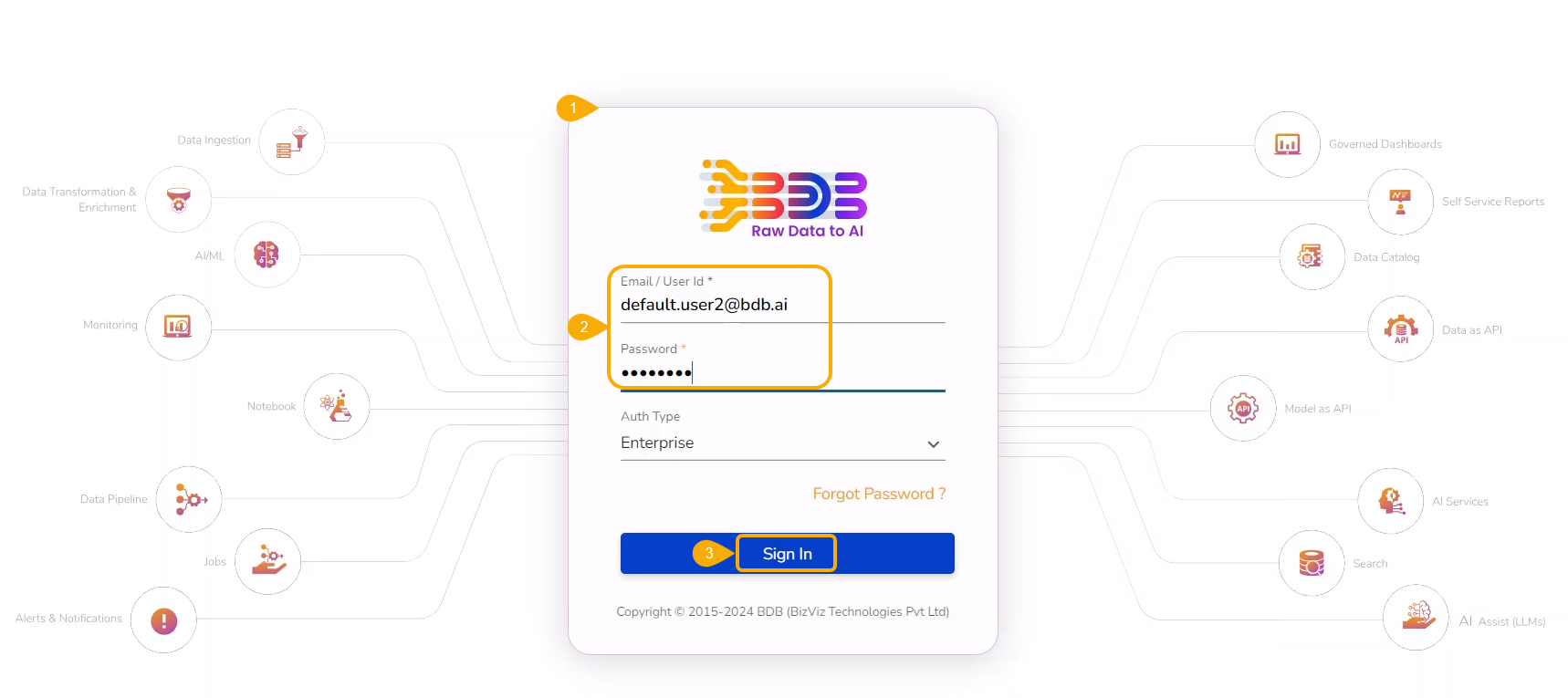 Accessing Platform using a Default User Credentials