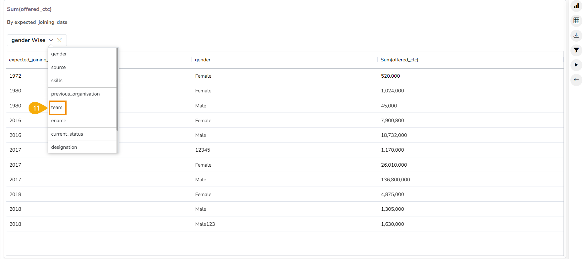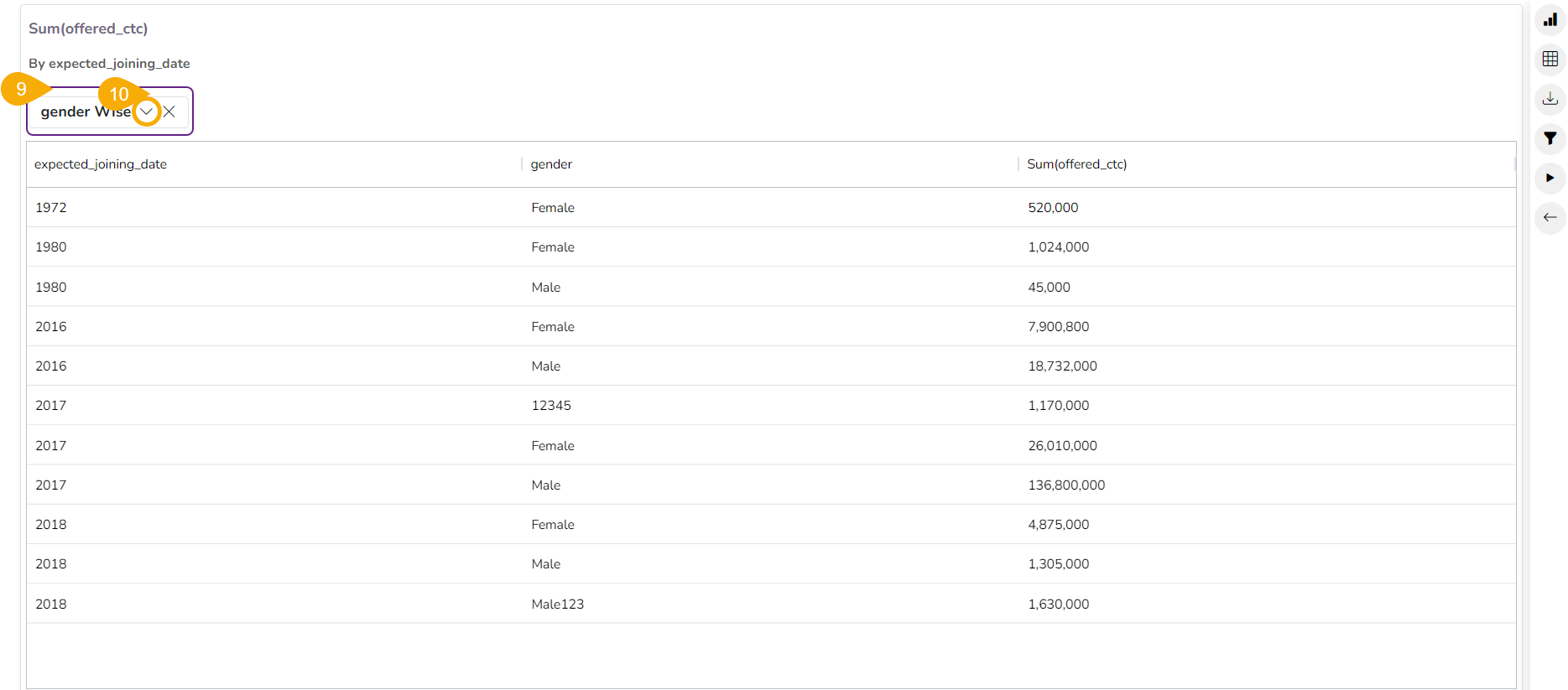 * The ***View*** gets modified based on the selected drill through option (E.g., the gender wise sum of the monthly salary is displayed via the Data Grid).