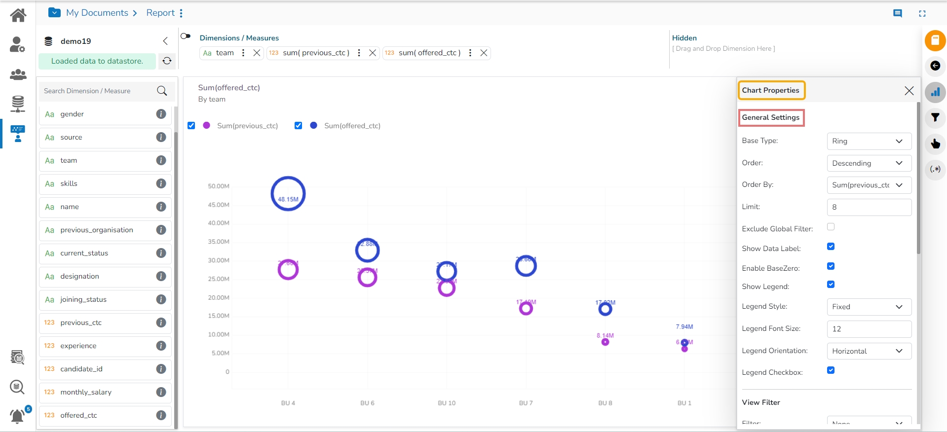 Enable Base Zero: Base value gets presented from Zero by using a checkmark in the given box.