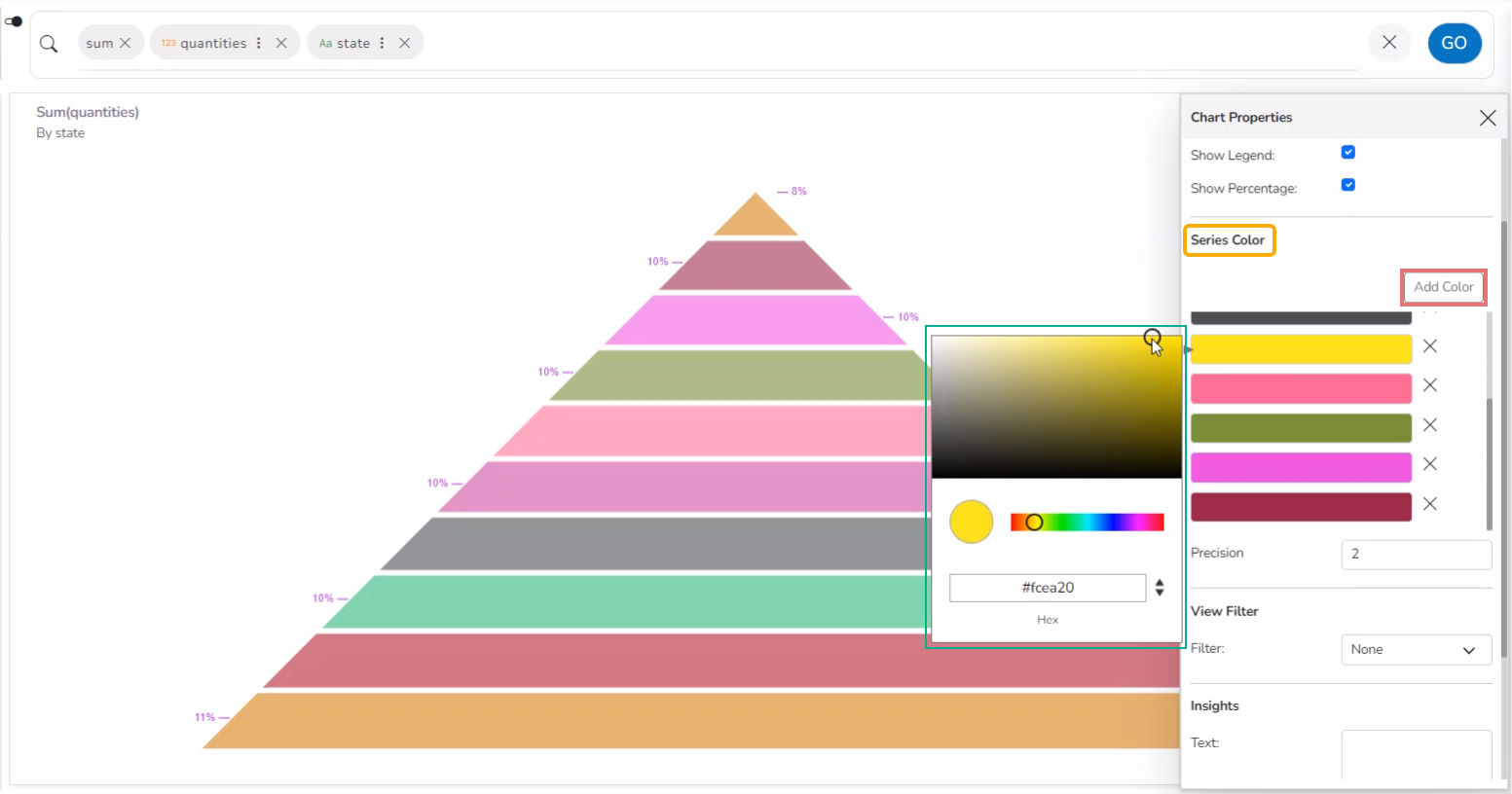 * Click the ***Add Color*** option to insert new colors to the series or modify the added color.
