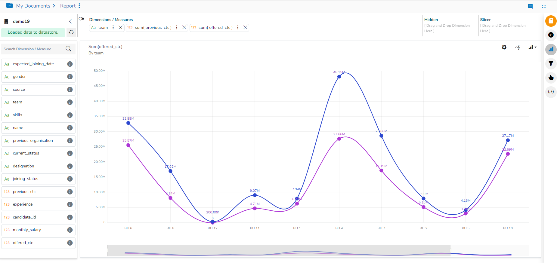2. *The users must configure the* [***Series Properties***](https://docs.bdb.ai/self-service-visualization-3/design-canvas/series-properties) *of the dragged measure after enabling the **Secondary Value Axis** to display the same in the chart.*