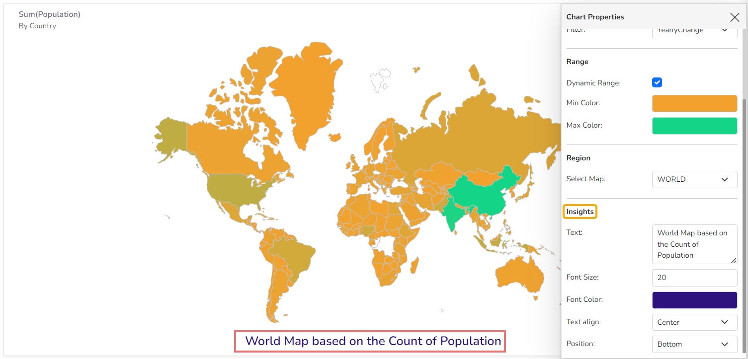 Check out the given walk-through on how to set the Map chart properties.