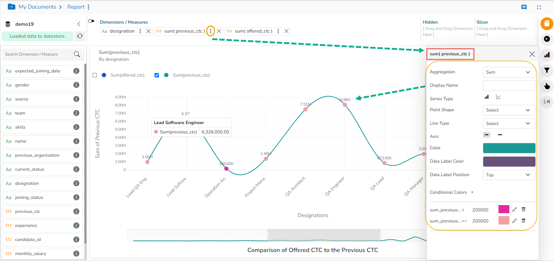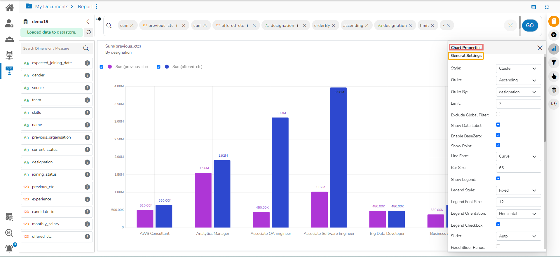 Show Data Label: Data label gets displayed by using a checkmark in the given box.
