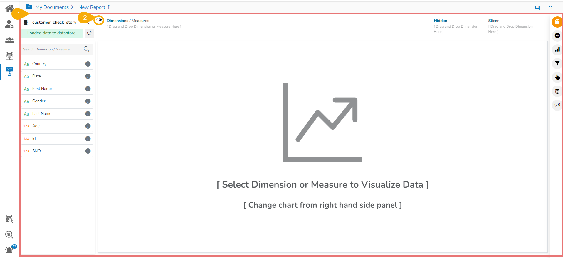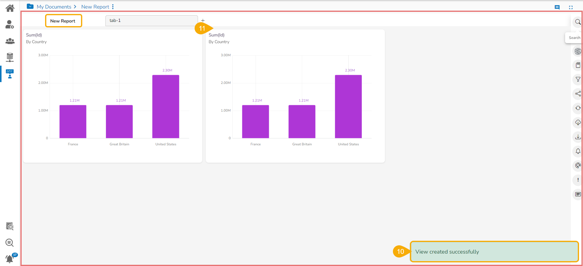 The user can start creating/ designing a View for a newly created Report by using the Design page or Design canvas.