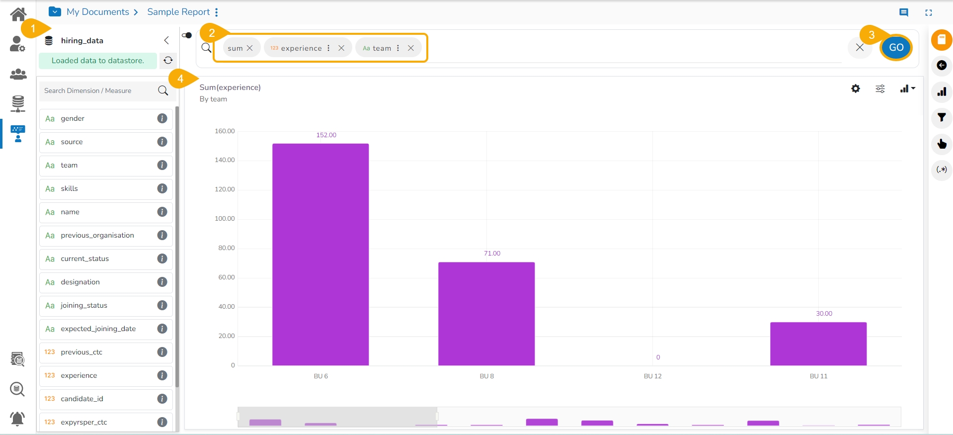A View gets displayed based on the selected combination of the Dimension and Measure.