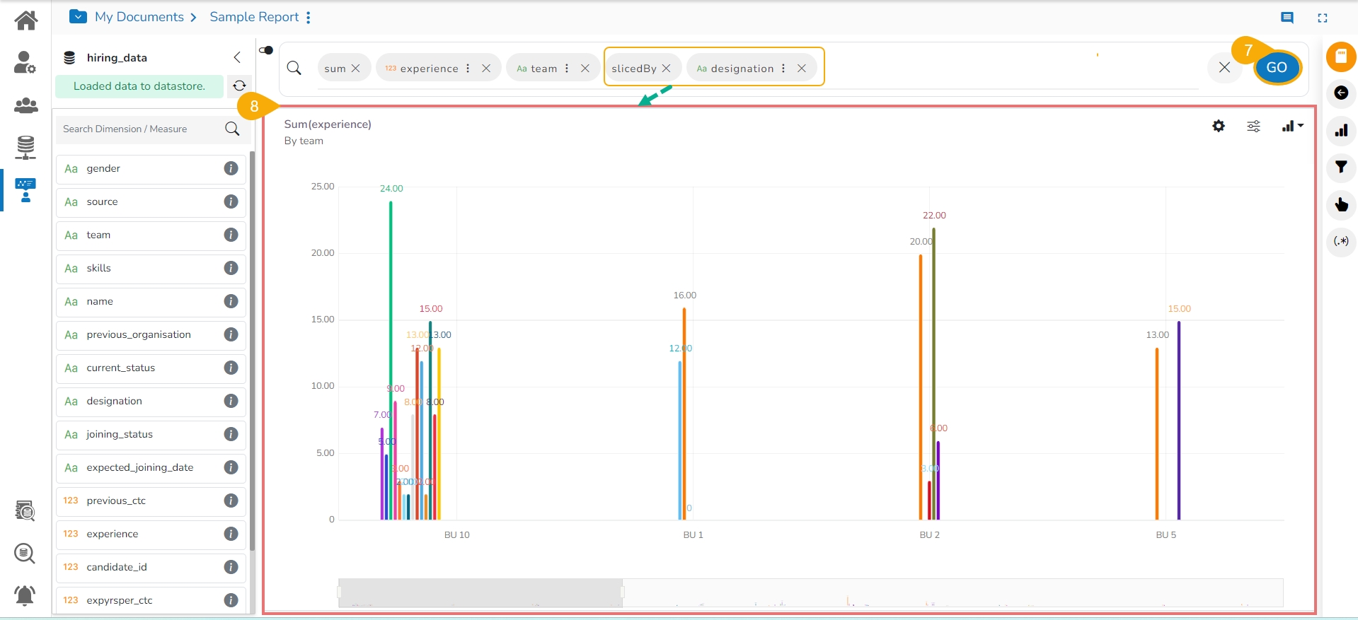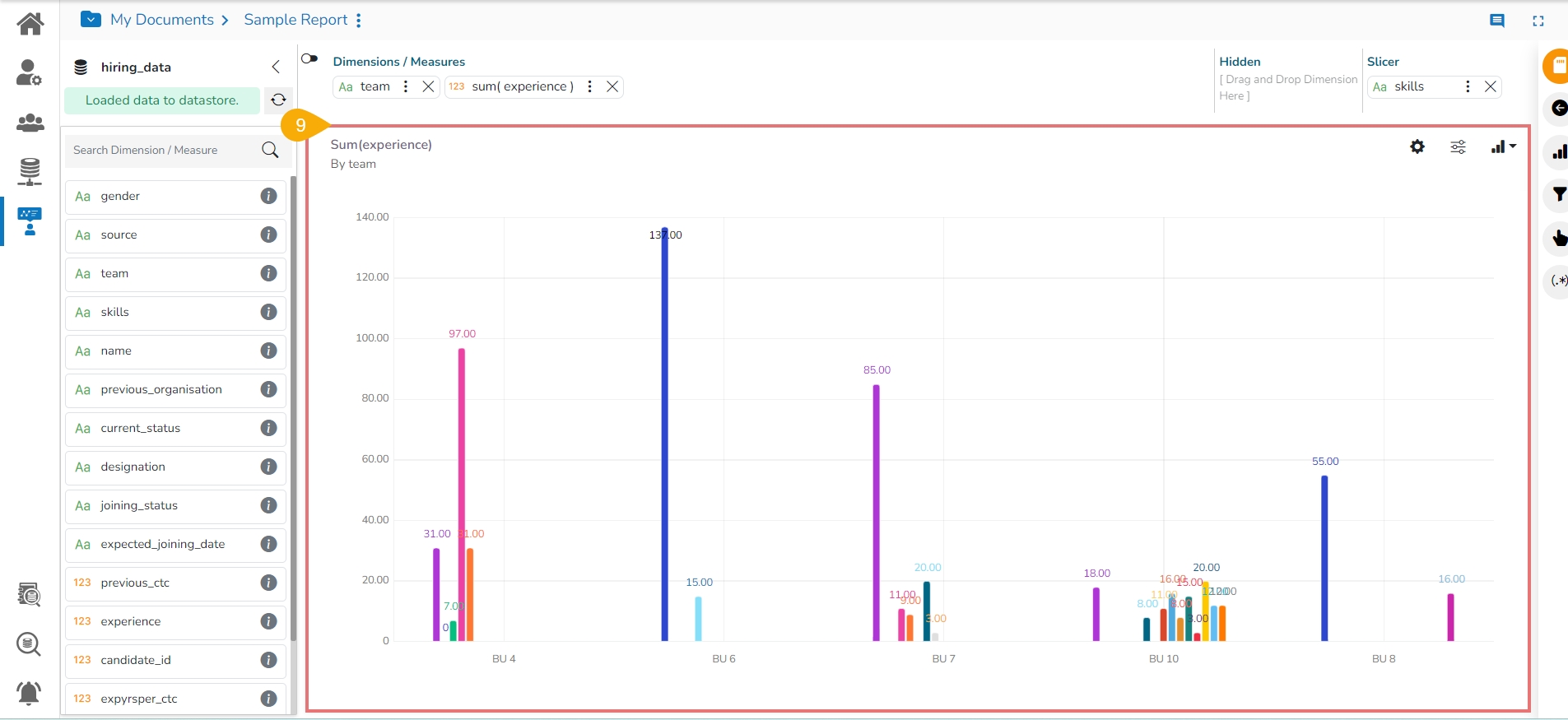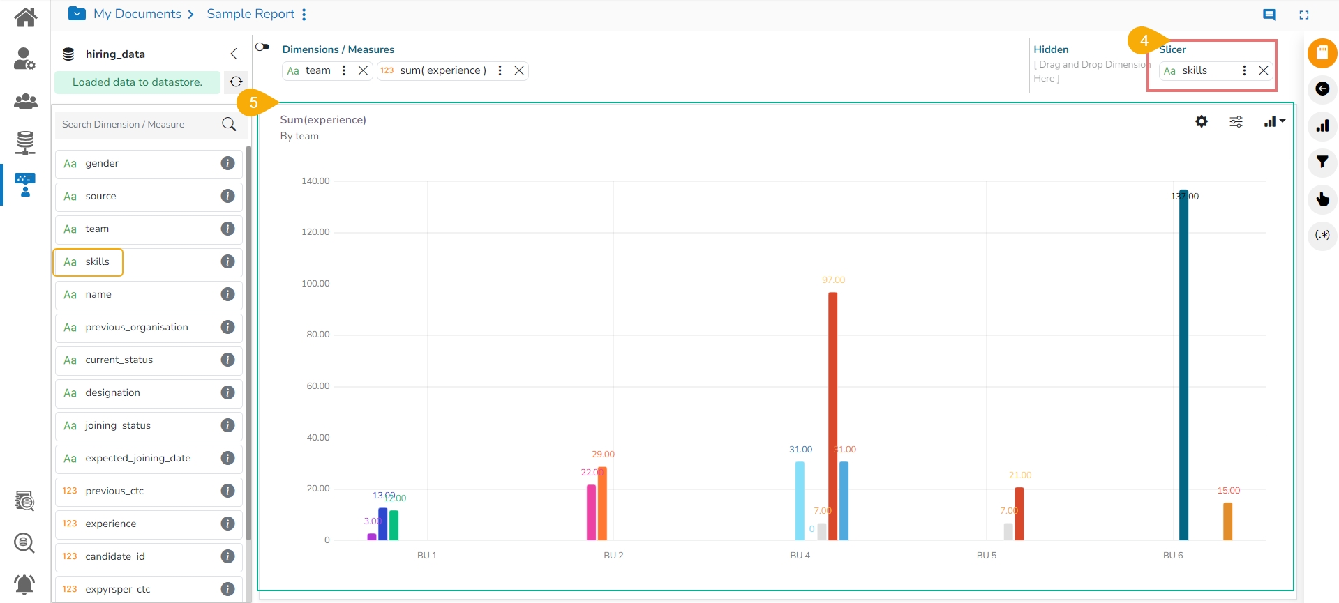 The slices are displayed in the created View based on the dimension value selected as slicer for the View.