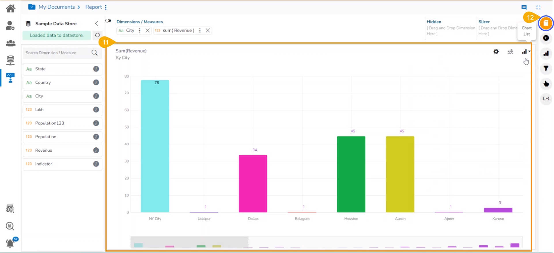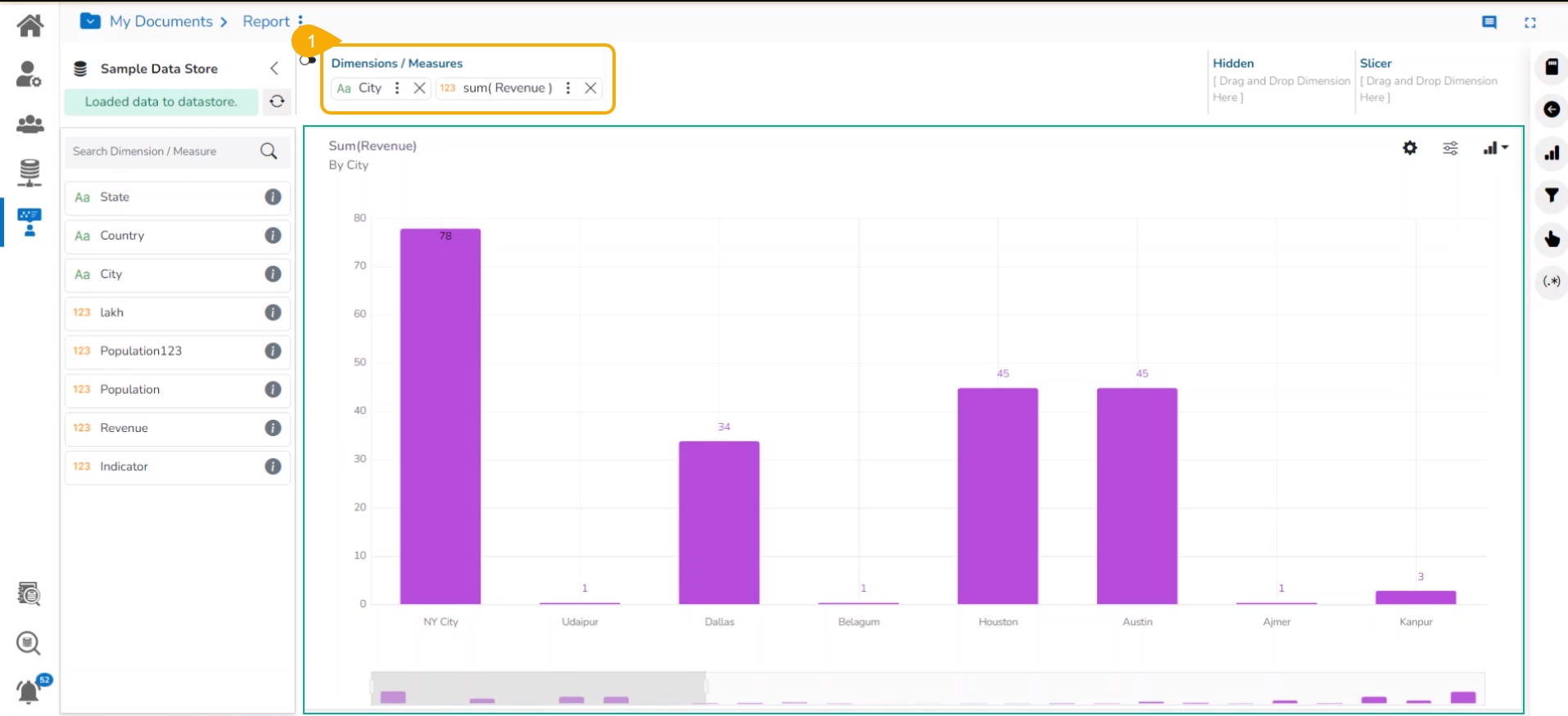 Select a Chart plotted with Categorical column(Dimension Column) & Measure column.