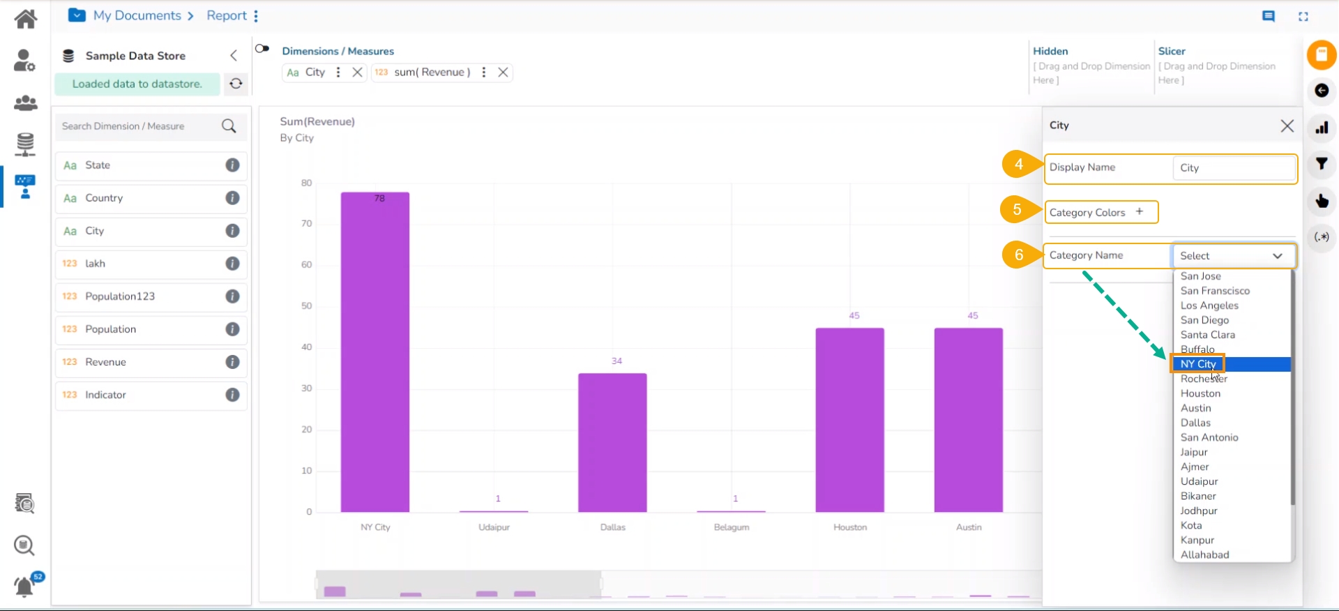 Check out the below-given illustration to understand how to customise the category values in a View of the Story.