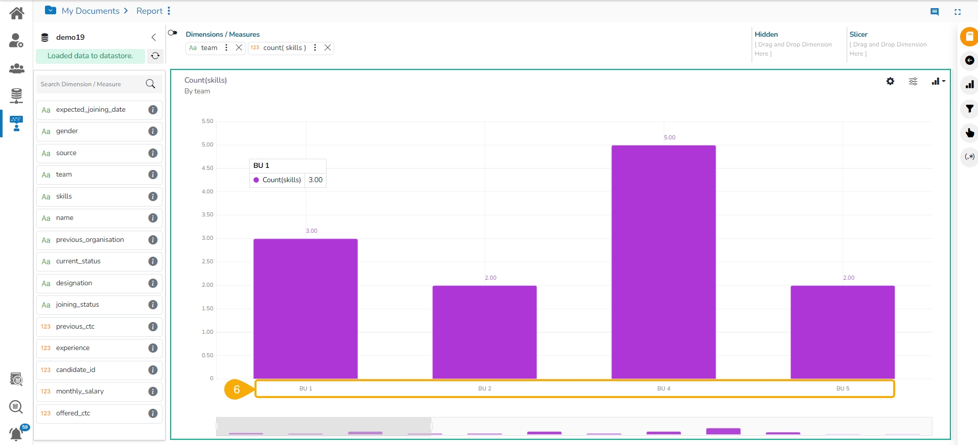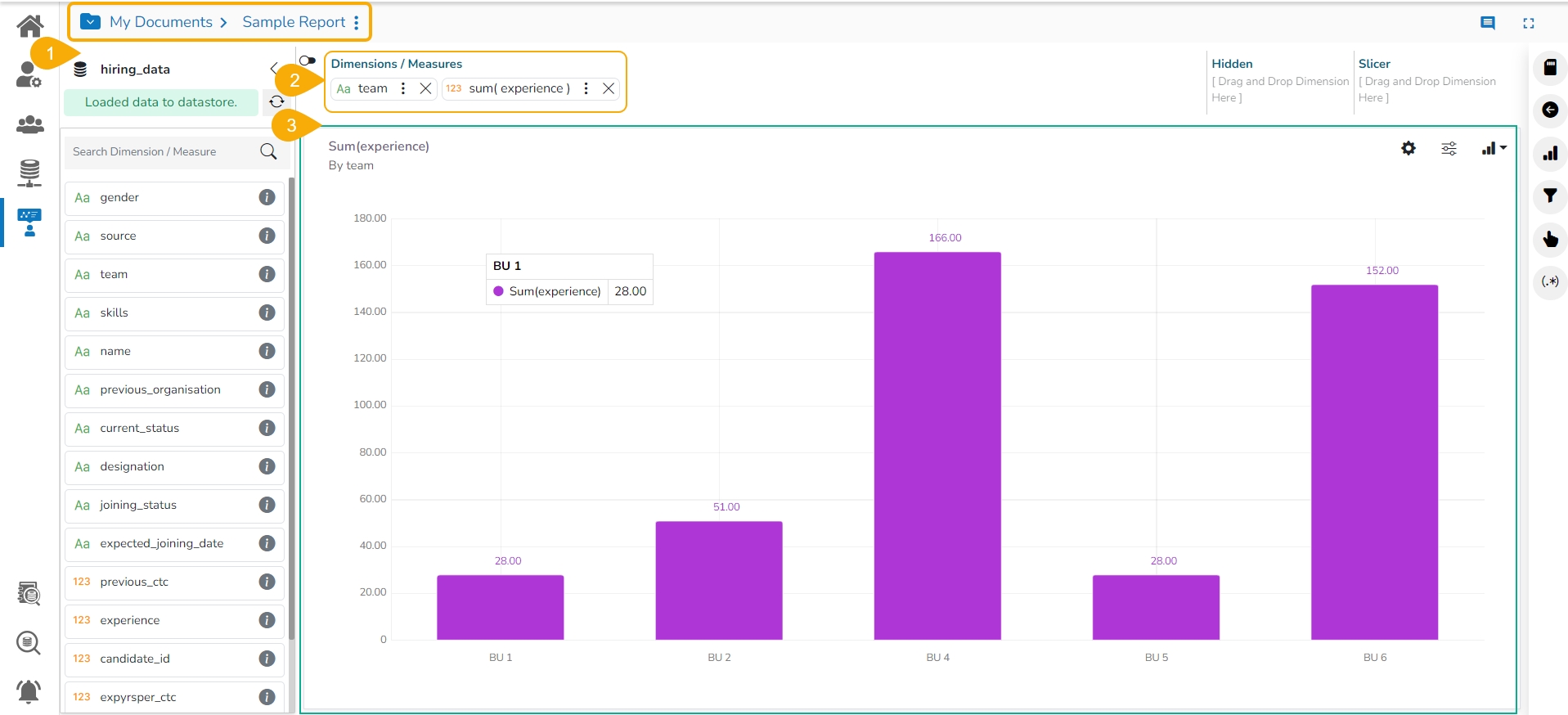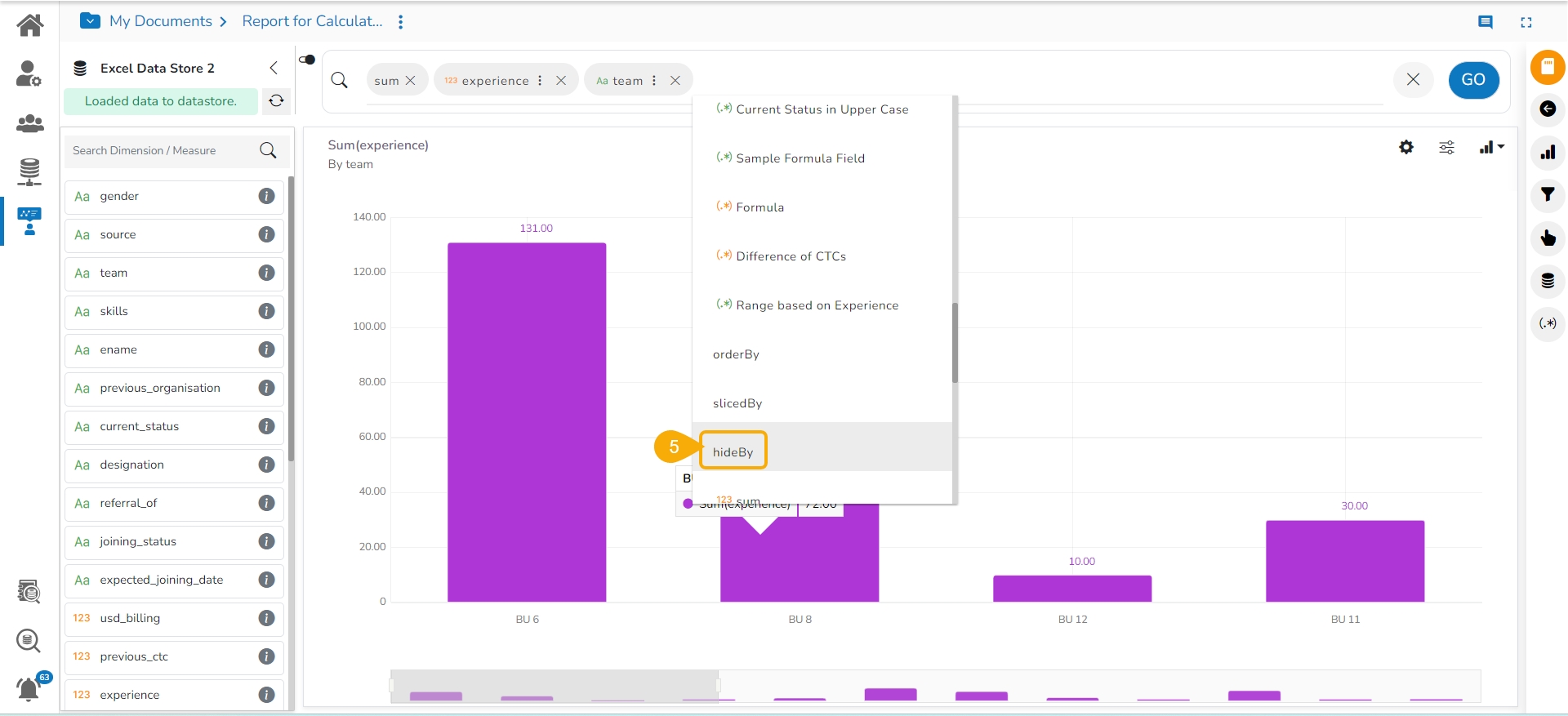 The View gets filtered with the provided order by and limit configurations. E.g., the following View displays 6 records of Sum of experience by Teams in the Ascending manner.