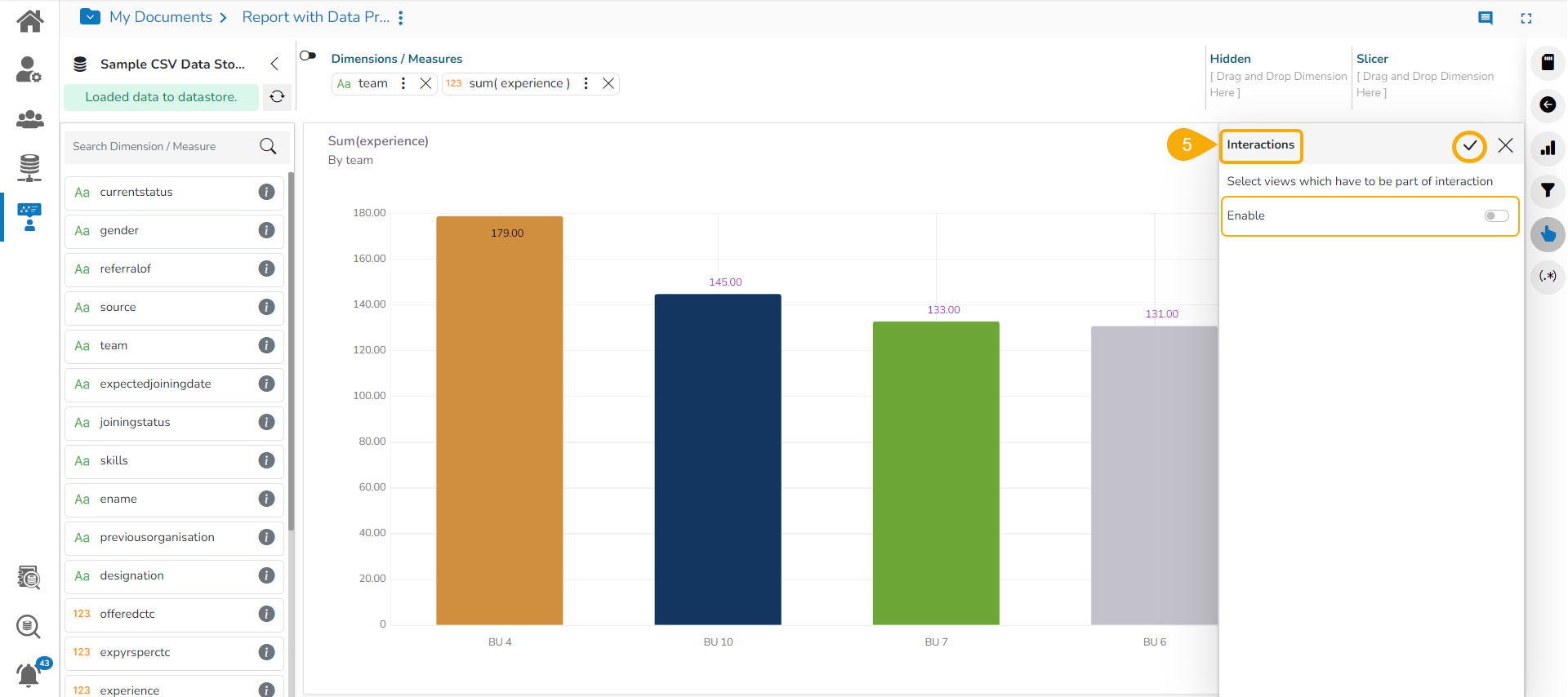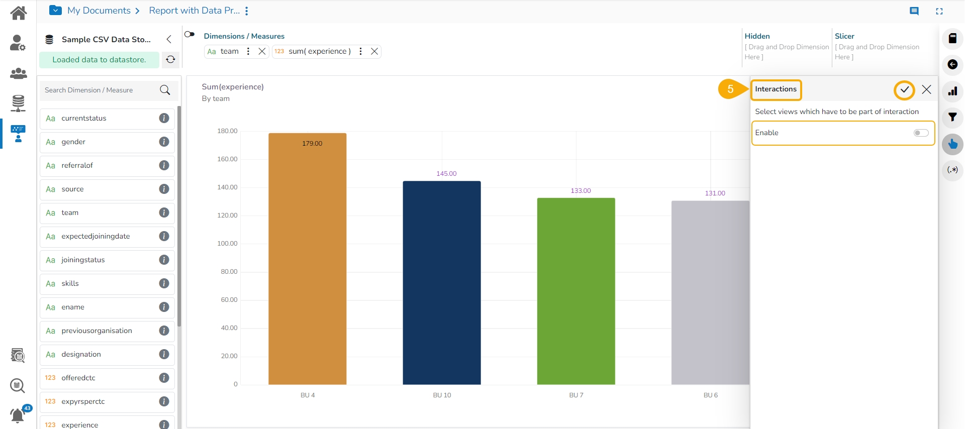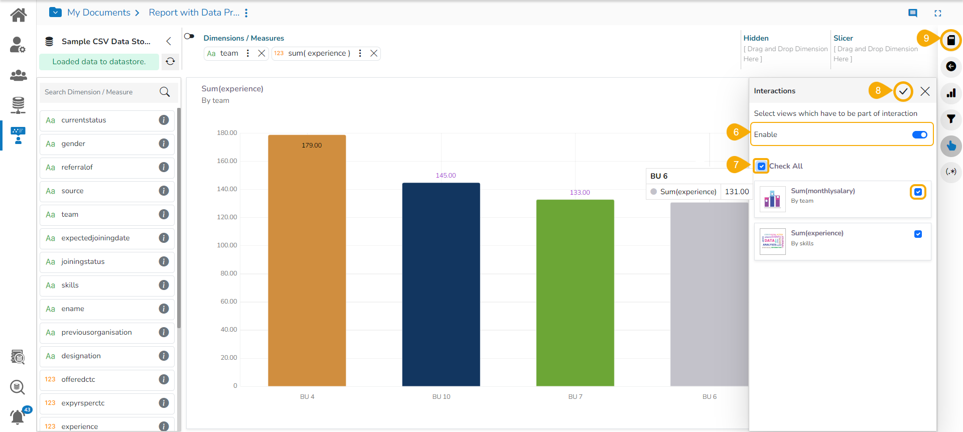 The Interactions option is the next level of applying the Global Filter. The suggested feature enables users to select multiple views of the storyboard to filter based on a specific view. By default, on a single click, all the views permitted for interactions get filtered.