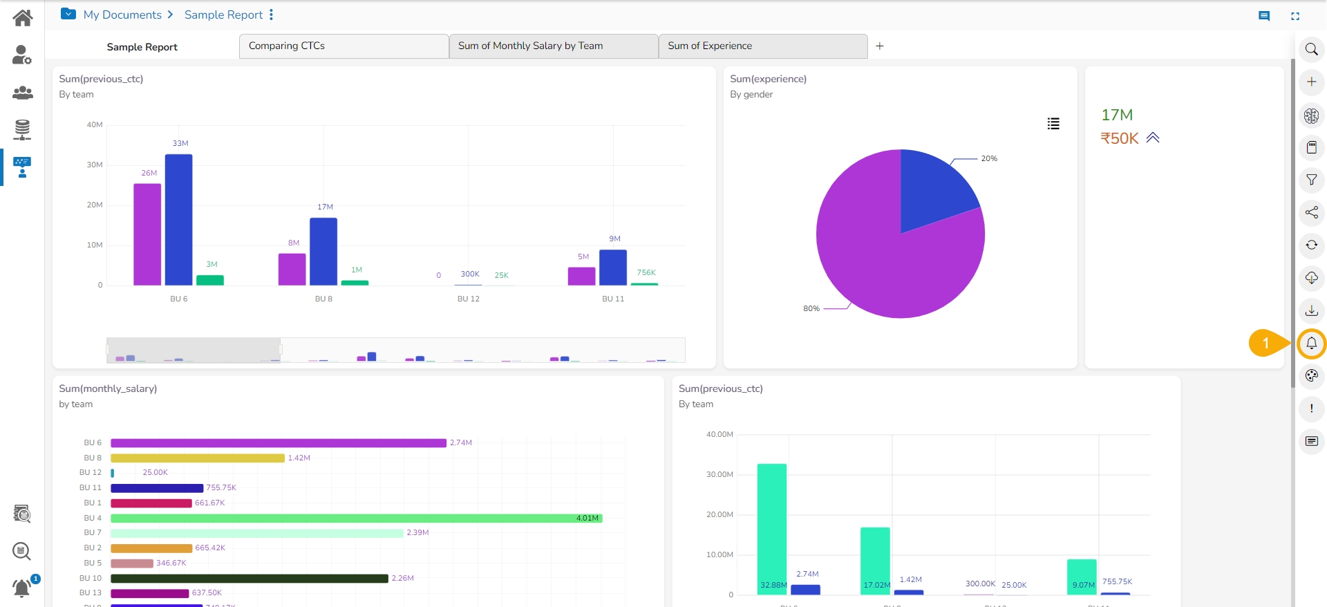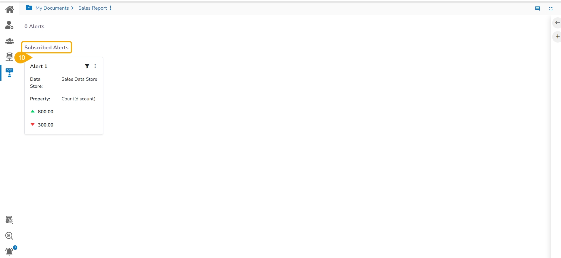 Click the Alert Center icon from the final screen of a Report.