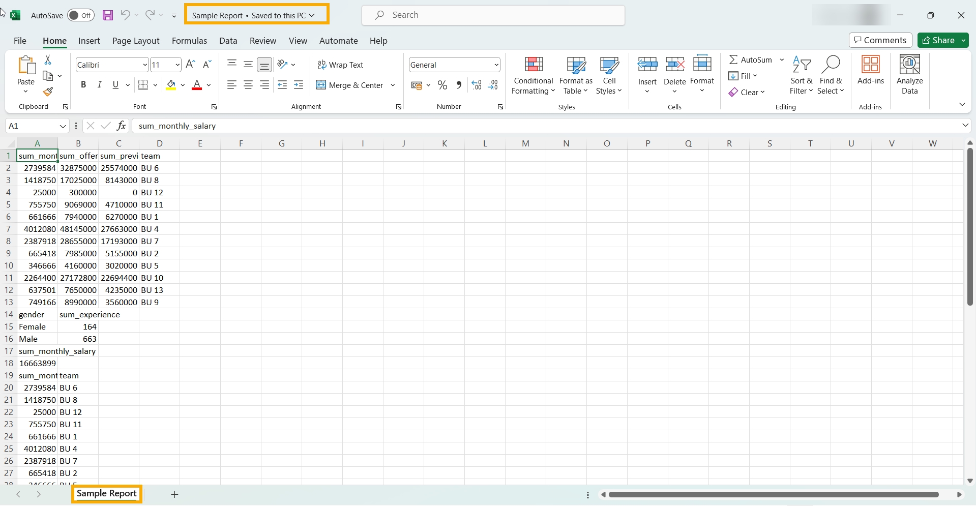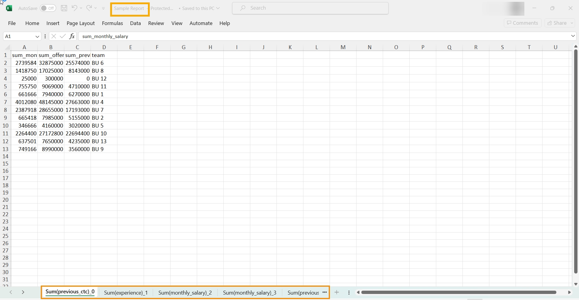 The story data gets saved in the CSV Excel format by clicking the CSV option. The collective data of different Views get displayed on one sheet.