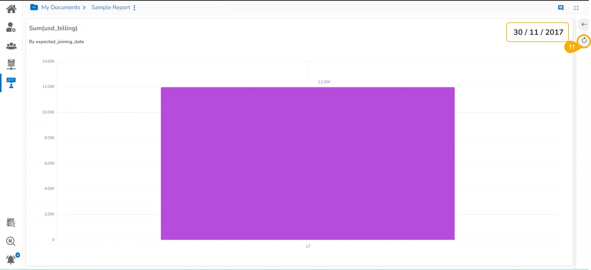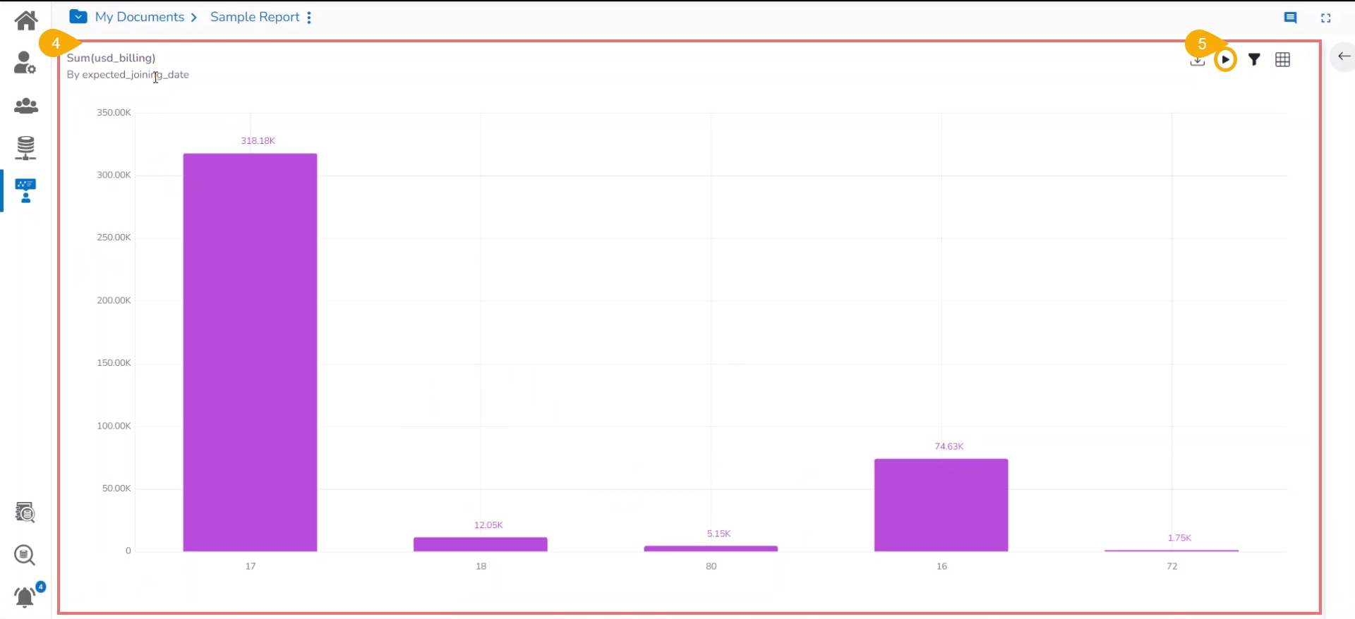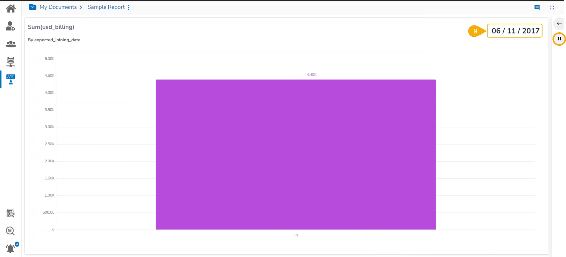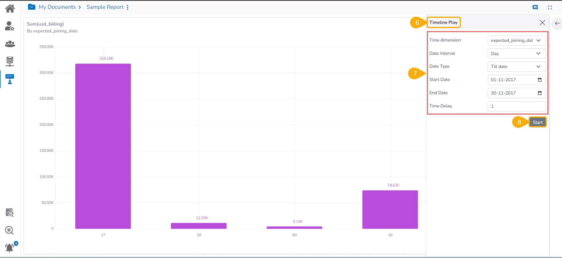 The user can access the Timeline play for a saved View from the Report. This feature allows the users to see the data changes over time.