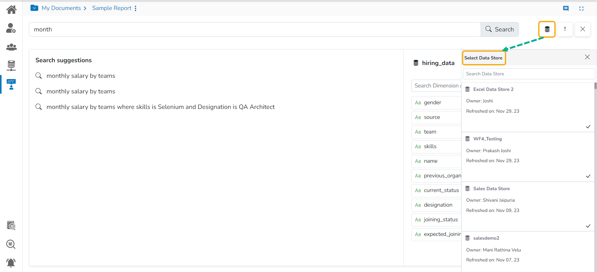 The NLP Search option helps users to quest for specific data all through the selected datastore and instantly displays the query results.