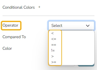 Select an Operator from the drop-down. The supported operators are displayed in the following image: