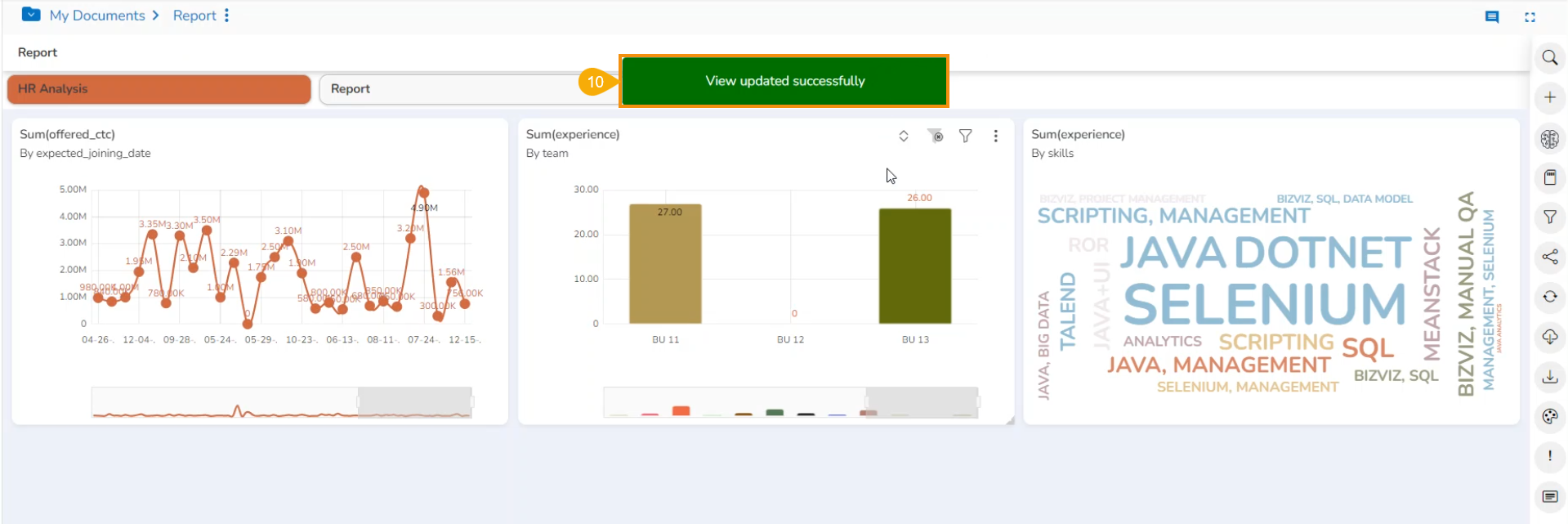 * The interaction will get displayed in the related ***Views*** by displaying only the selected data.