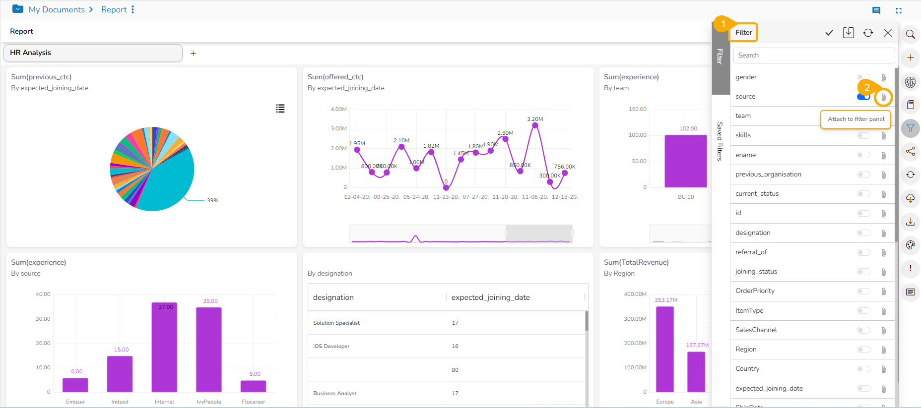 The Attach to filter panel turns blue.