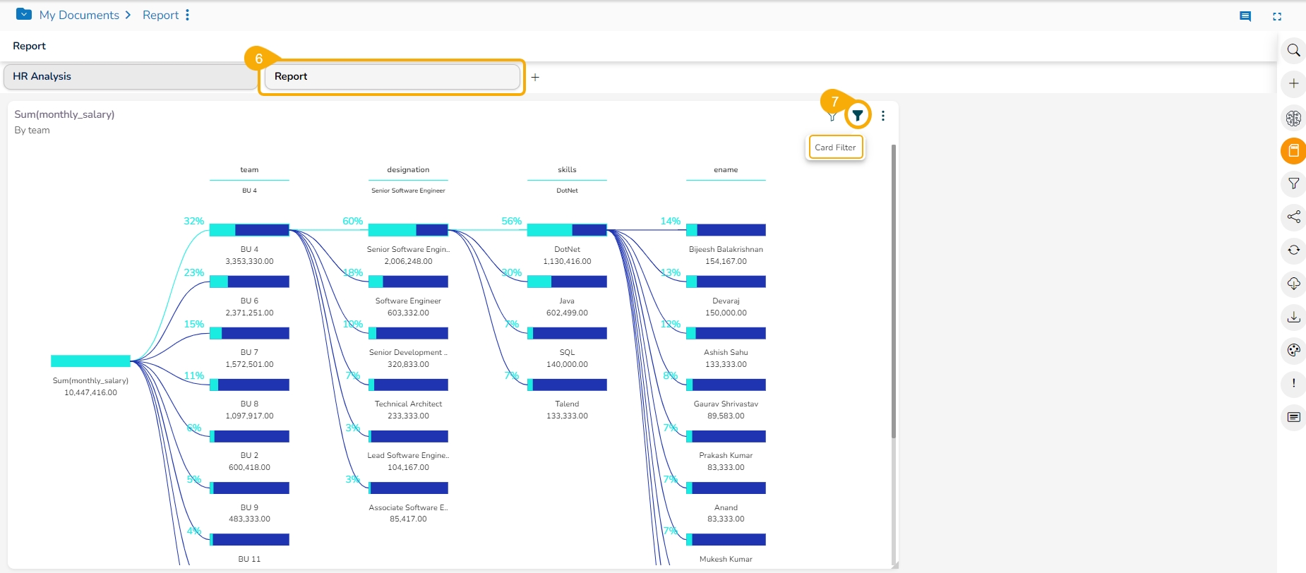 The selected View Filter option appears in the Card Filter context menu (In this case, it is 'Source').