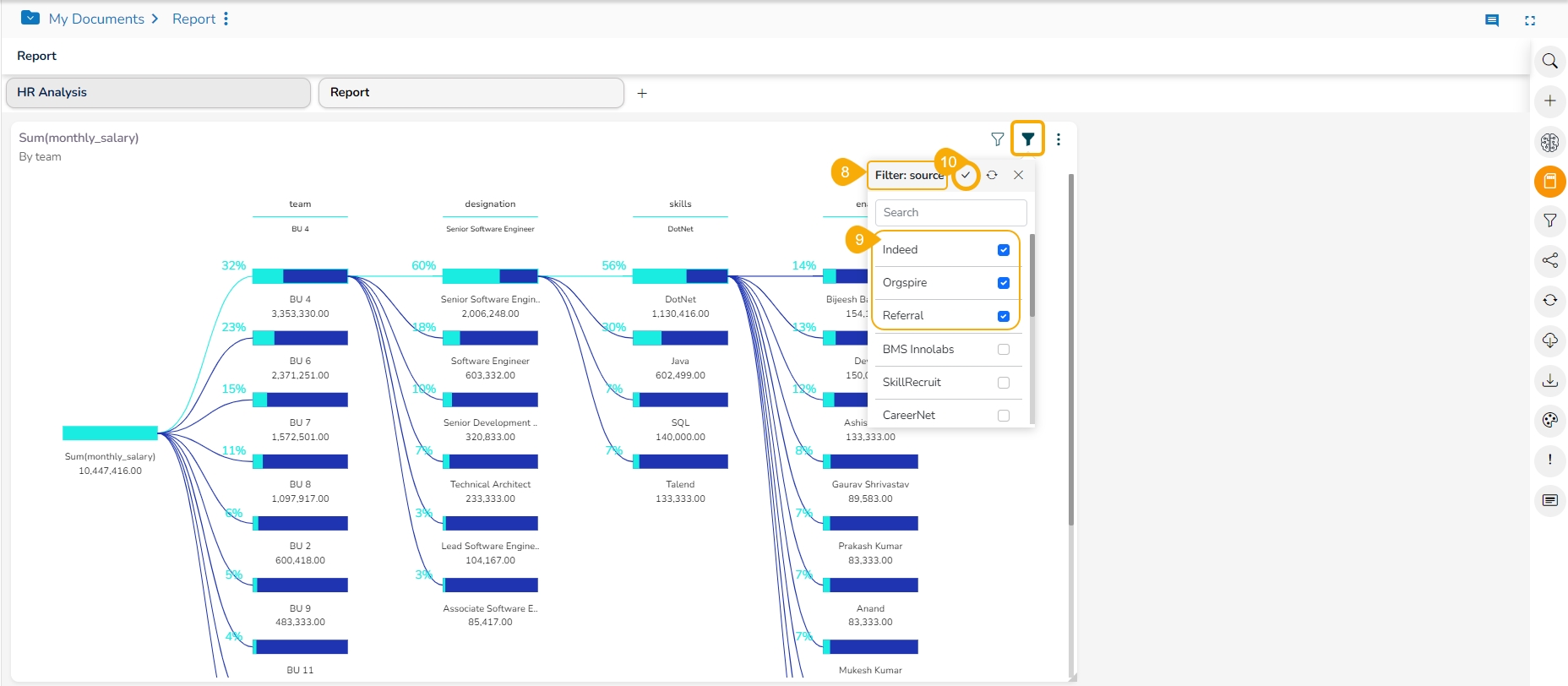 Select a filter condition using the drop-down menu (In this case, the filter condition is Source).