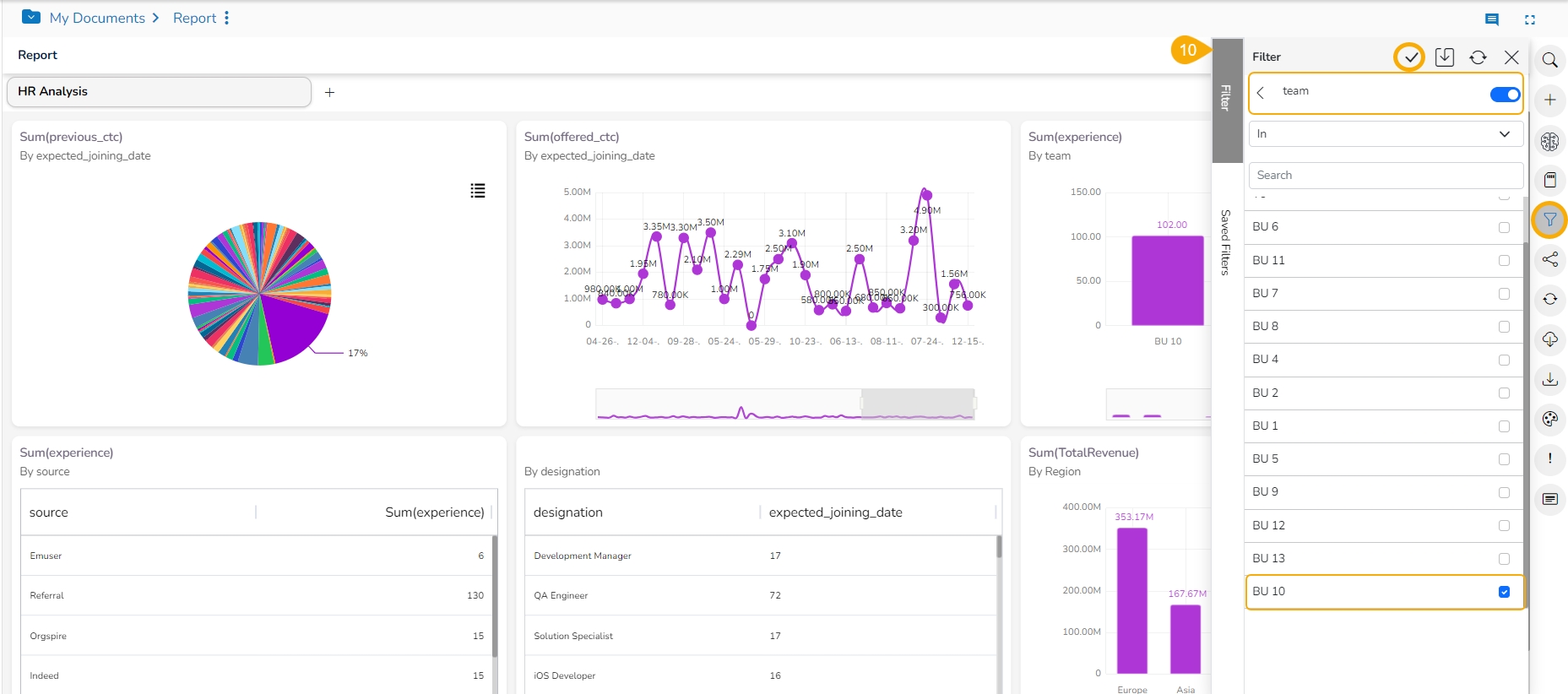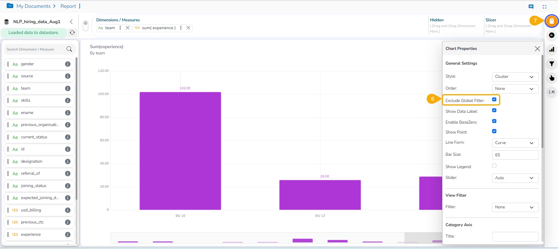 The Global filter values are applied to all the available Views of a report (if they are created using the same data store). The users can exclude a specific view from the Global Filter effect by selecting the Exclude from the Global Filter option.