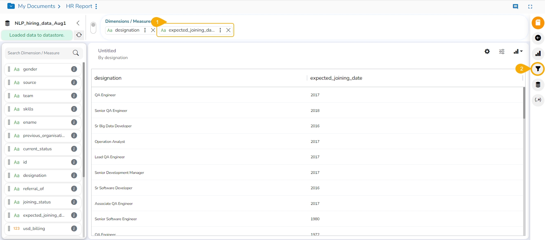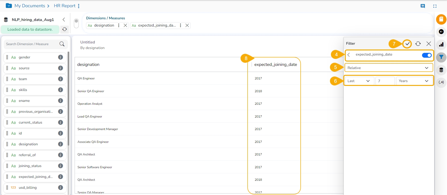 Select a dimension or measure containing Date values to filter the View. The user can also use the search bar to search it.
