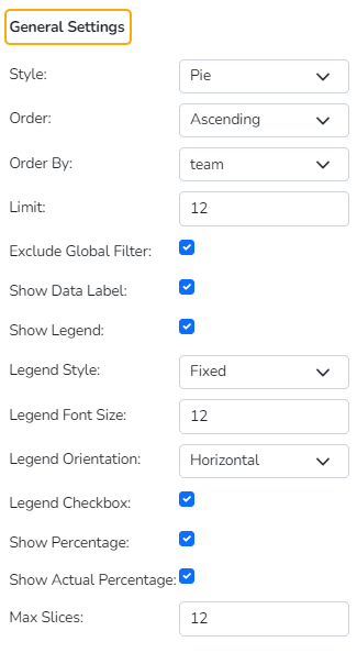 Max Slices: Set a number to limit the maximum displayed slices in the chart.