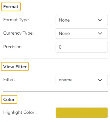 Format Type: Select a format type from the drop-down menu. The supported options are None, Auto, Percent, Thousand, Lacs, Crore, Million, Billion, Trillion, and Quadrillion.