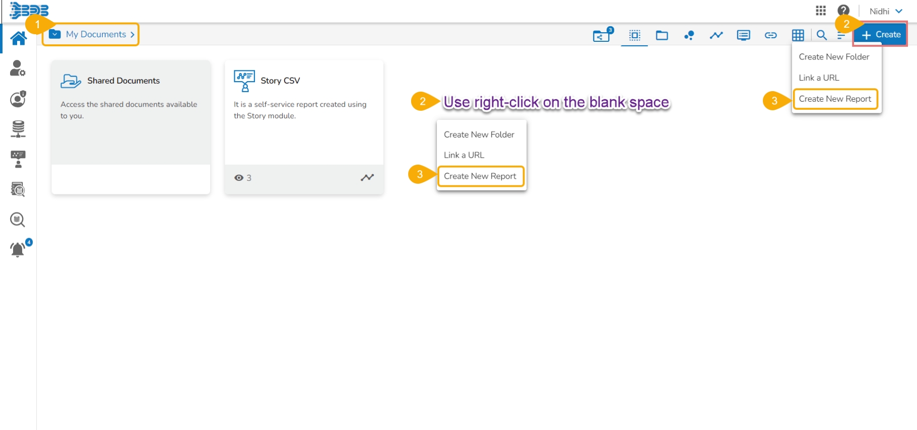 Check out the various ways to access the Report module and the Create New Report options using the BDB Platform homepage.