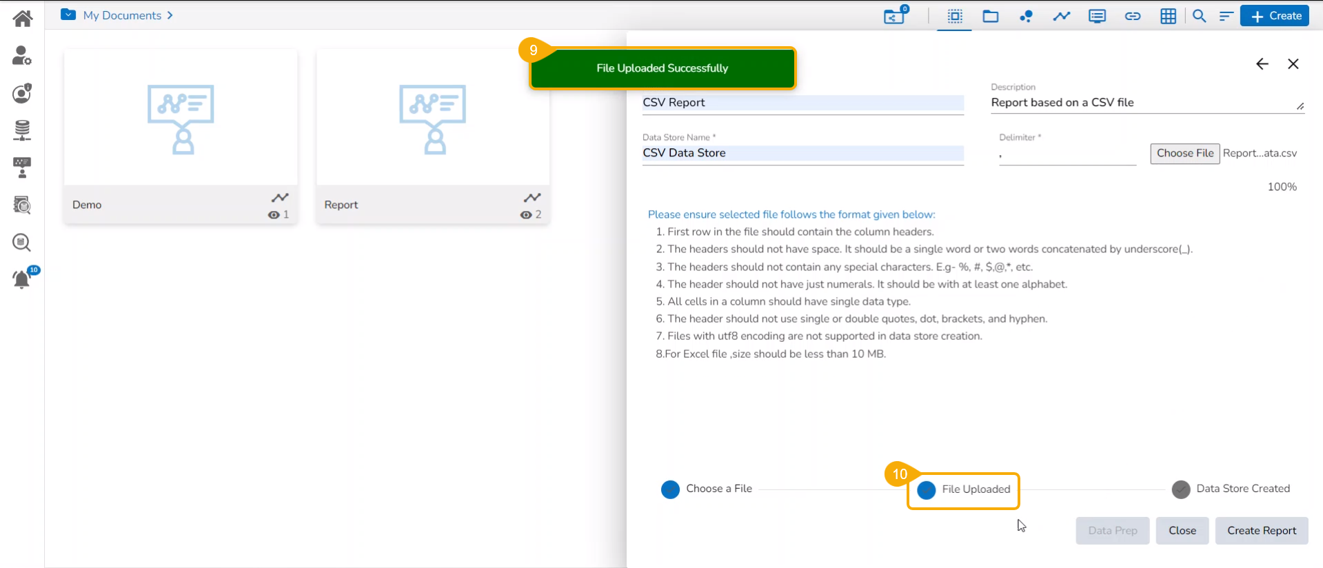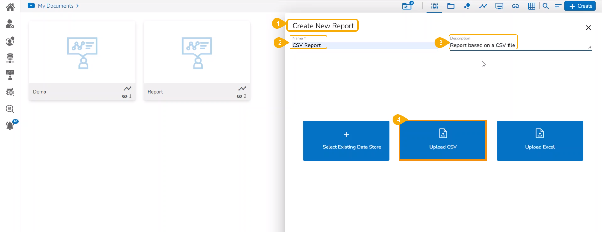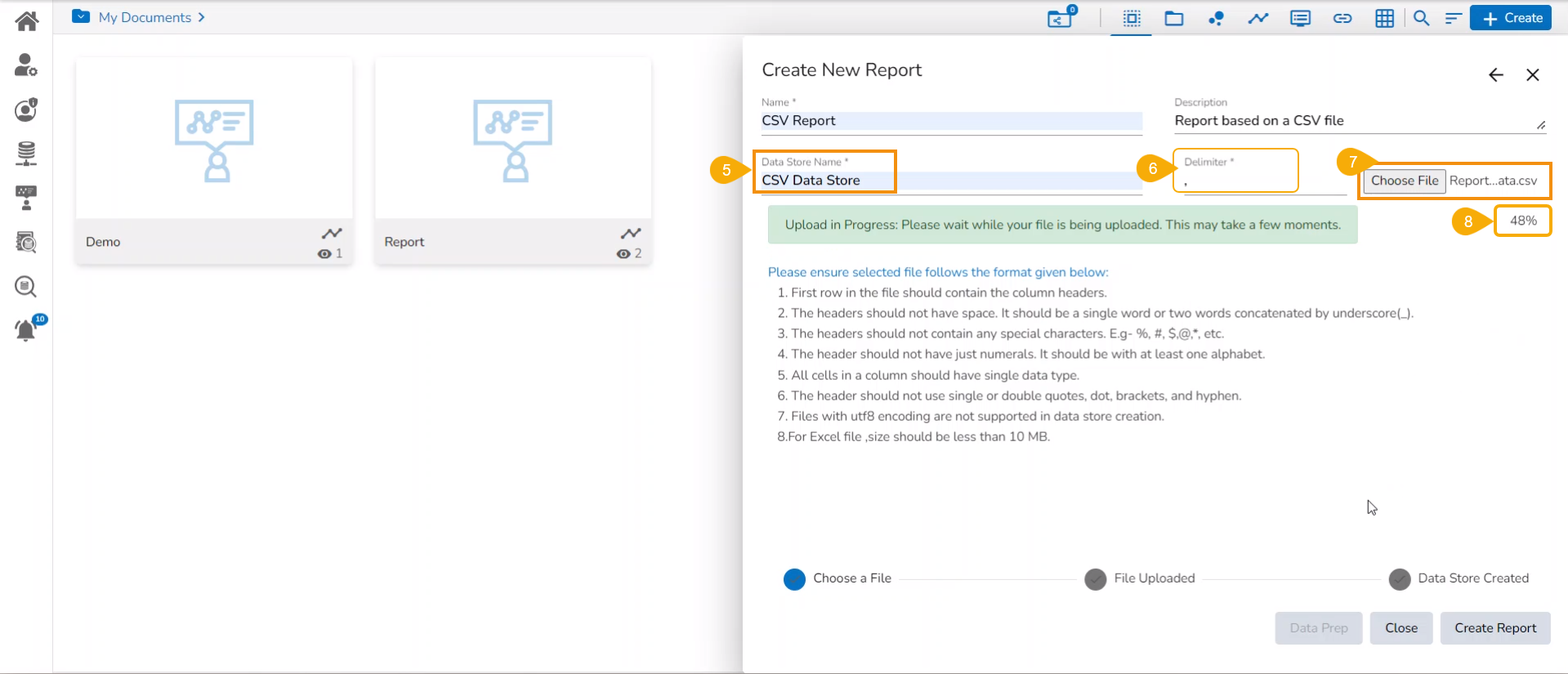 Creating a new Report by Uploading a CSV File