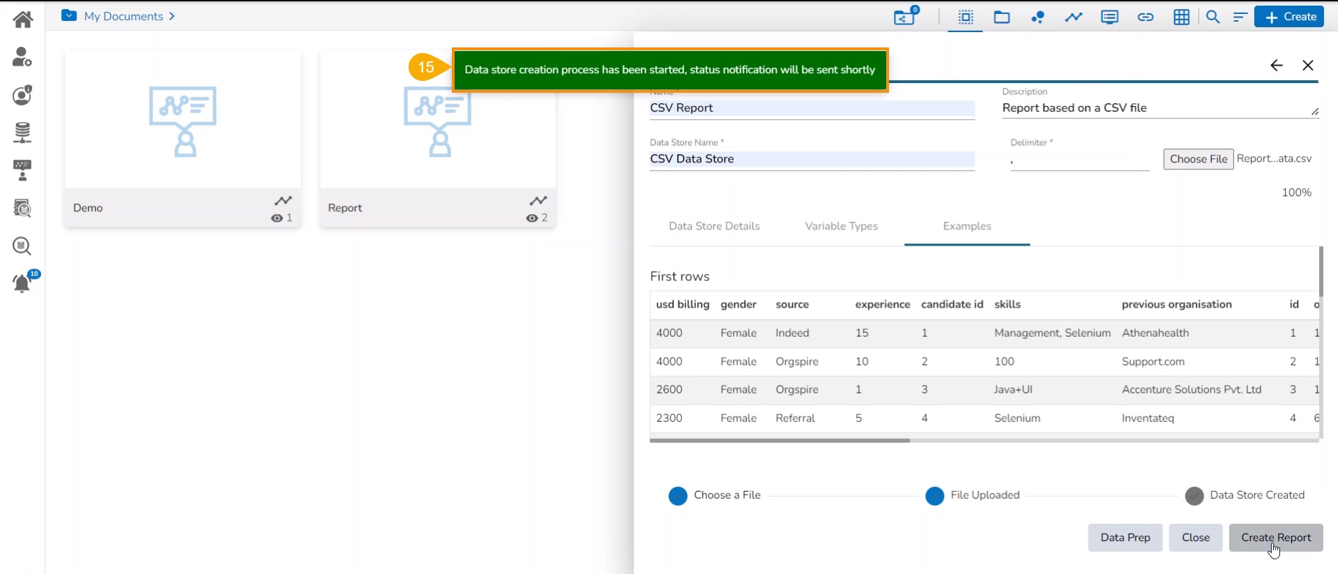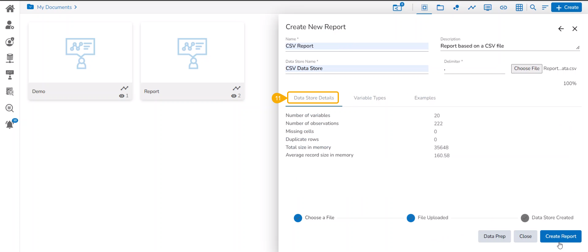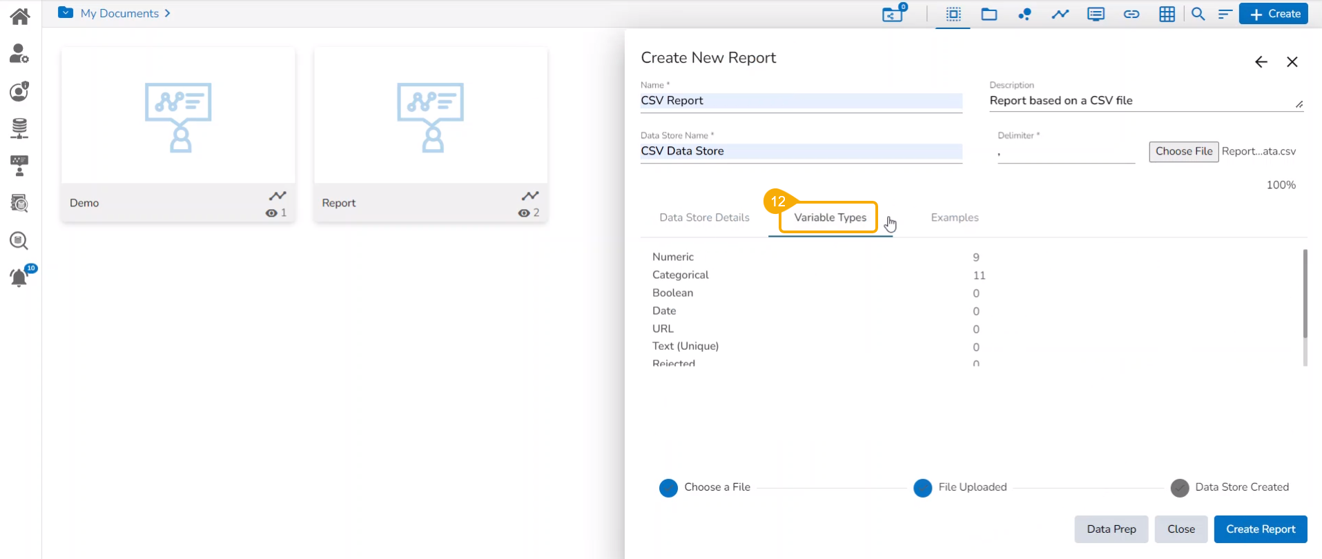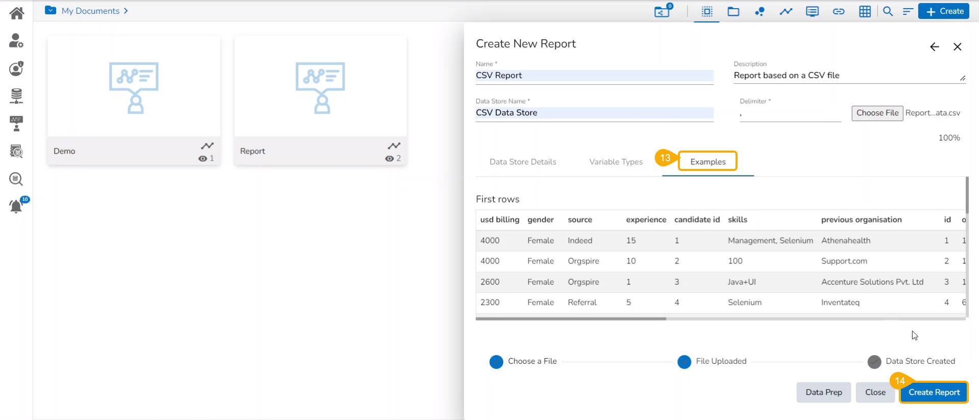 Creating a new Report by Uploading a CSV File
