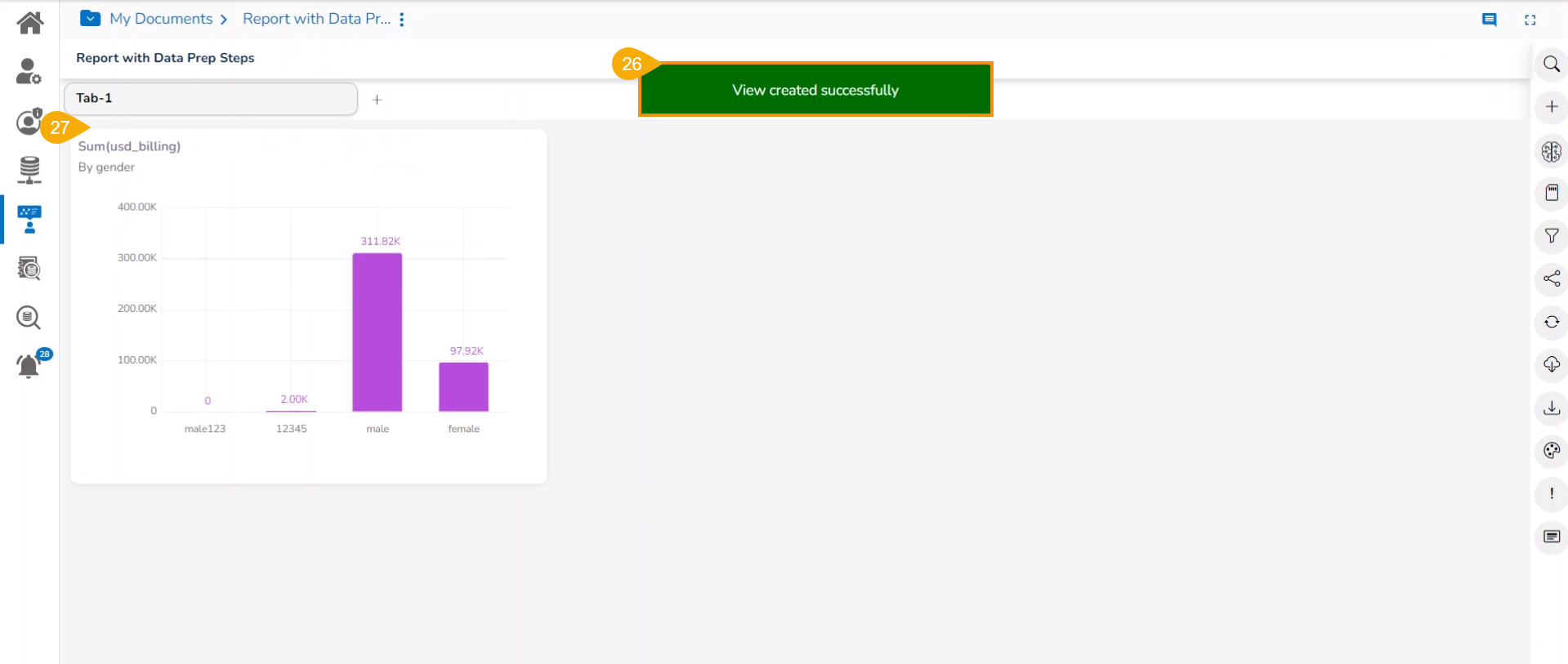 A notification message appears to ensure that the View has been created successfully.